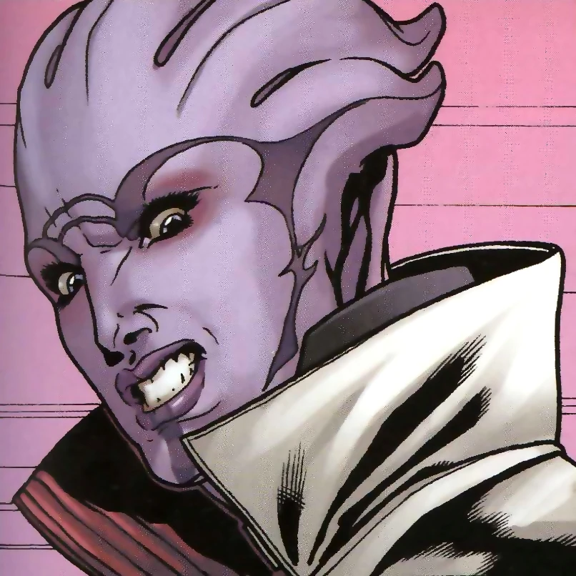 Von Archangel weiß sie zu berichten, dass er ein enormes Ärgernis für die Söldnerbanden darstellt und sie sich zusammengetan haben, um ihn auszuschalten. Sie verweist Shepard auf ein Rekrutierungsbüro innerhalb des Afterlife, da Tarak, der Anführer der Operation, mittlerweile gezwungen ist, sogenannte "Freischaffende" als Kanonenfutter anzuheuern.