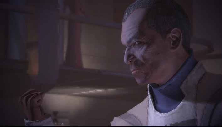 Sollte er der Ratsherr sein, wird er Shepard gegenüber sehr misstrauisch und pikiert sein. Außerdem erhält man seinen Spectre-Status nicht zurück. Des Weiteren überlässt er sämtliche weitere Gespräche Anderson, den er auch noch anblafft. (Sogar so schlimm, dass Shepard kurz meint, dass Anderson seinen Job verliert.)