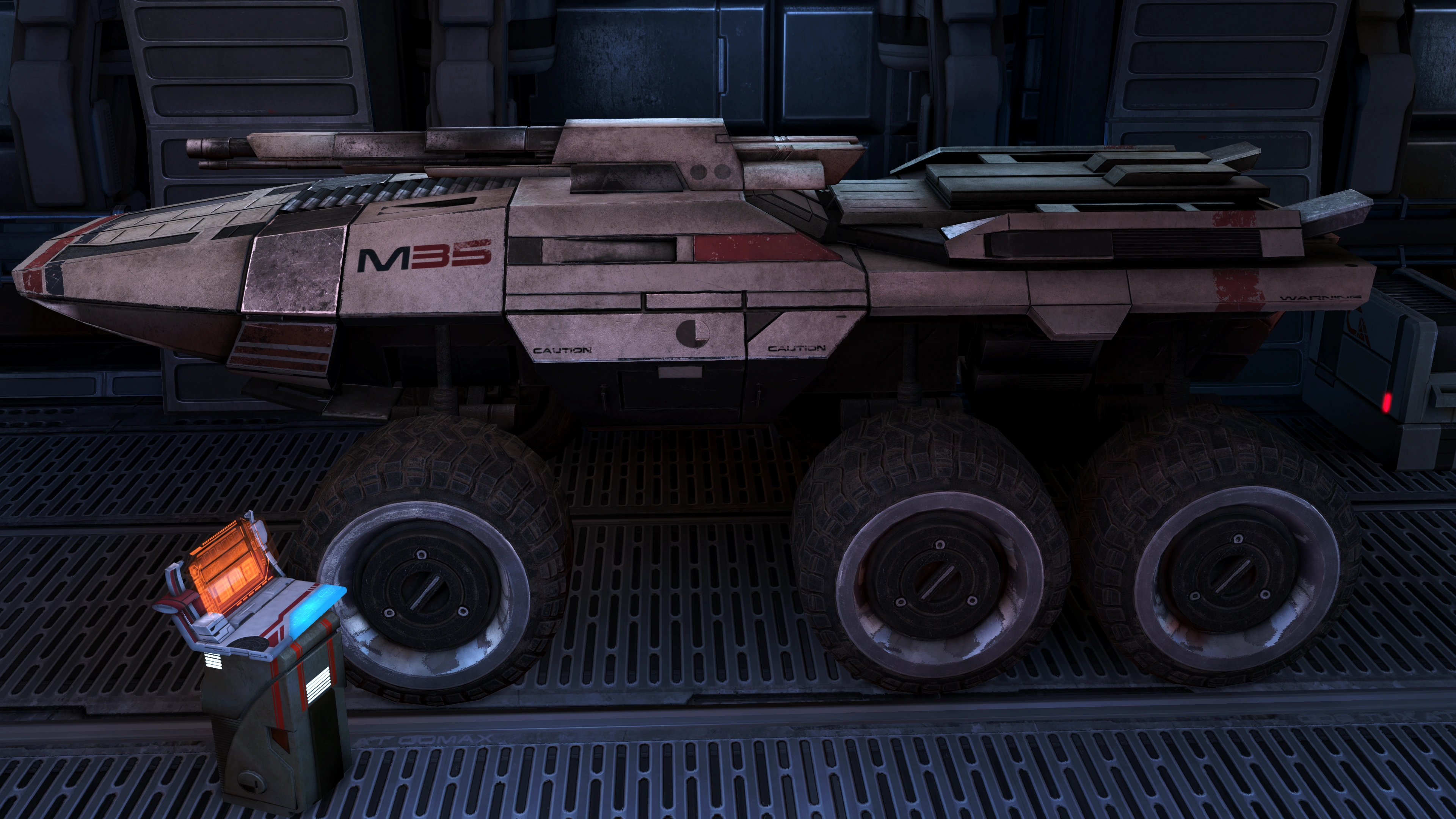 Als Shepard 2185 den Mako wiedersieht, hat er einen Flashback, wie der Mako auf der Normandy stand.