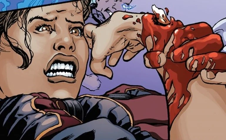 Im Trainingsraum finden die Jugendlichen einen Haufen Baumaterial vor. Shelby ist an einen Pfosten gefesselt und wirkt so gequält, als sei er gefoltert worden. Die anderen Schüler bleiben entsetzt stehen und sehen zu Shelby.