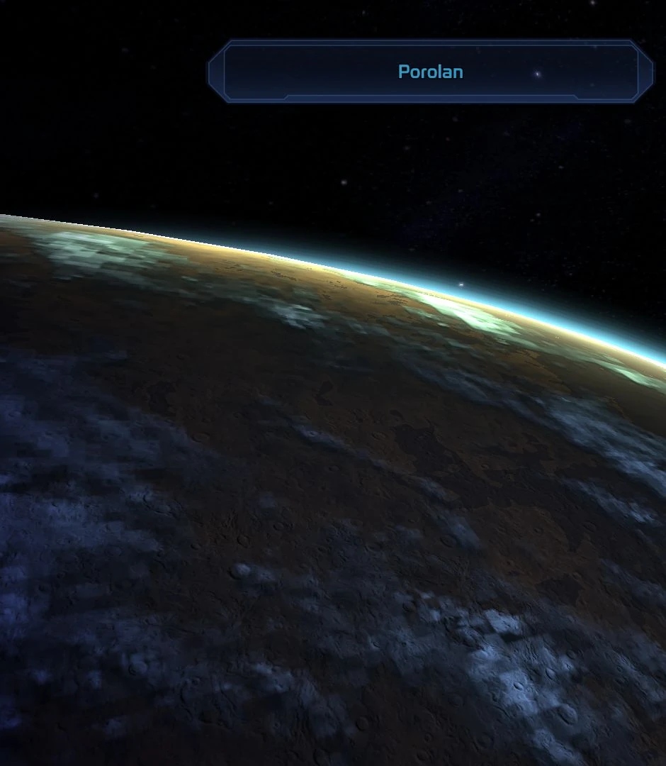 Porolan ist ein großer terrestrischer Planet, in etwa halb so groß wie die Erde. Trotz der dichten Atmosphäre ist es auf dem Planeten bitterkalt, denn der Rote Zwerg Macedon strahlt nicht viel Hitze ab. Die Oberfläche besteht hauptsächlich aus Silikaten, aber es gibt hier auch bedeutende Funde an Eisen und anderen industriell interessanten Metallen. Trotz der vorherrschenden großen Schwerkraft könnte es sich lohnen, diese Vorkommen abzubauen.