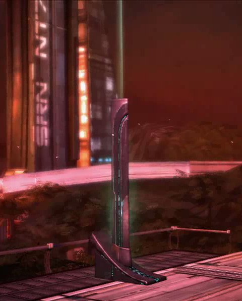 Der Sender war ein protheanisches Artefakt, das auf der Menschenkolonie Eden Prime gefunden wurde. Die Ähnlichkeit mit den auf dem Mars entdeckten protheanischen Datenbanken weckte sofort das Interesse der Allianz und des Citadel-Rates. Der Sender erwies sich als solider Datenbankspeicher und Teil eines die Milchstraße umspannenden Kommunikationsnetzwerkes, ähnlich dem modernen Extranet. Da bis dahin nur wenige intakte protheanische Paläo-Technologie gefunden werden konnte, versprach man sich von dem Sender einen ähnlichen Technologiesprung, wie bei der Entdeckung der Masseneffektantriebe und -Portale.