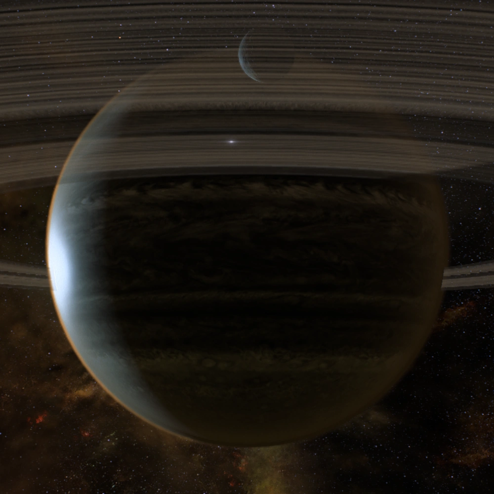 Trotz seiner Größe war dieser Gasriese bei frühen Erkundungen von der Milchstraße aus nicht sichtbar. Ob er einfach übersehen wurde oder die Geißel der Grund dafür ist, muss derzeit Vermutung bleiben.