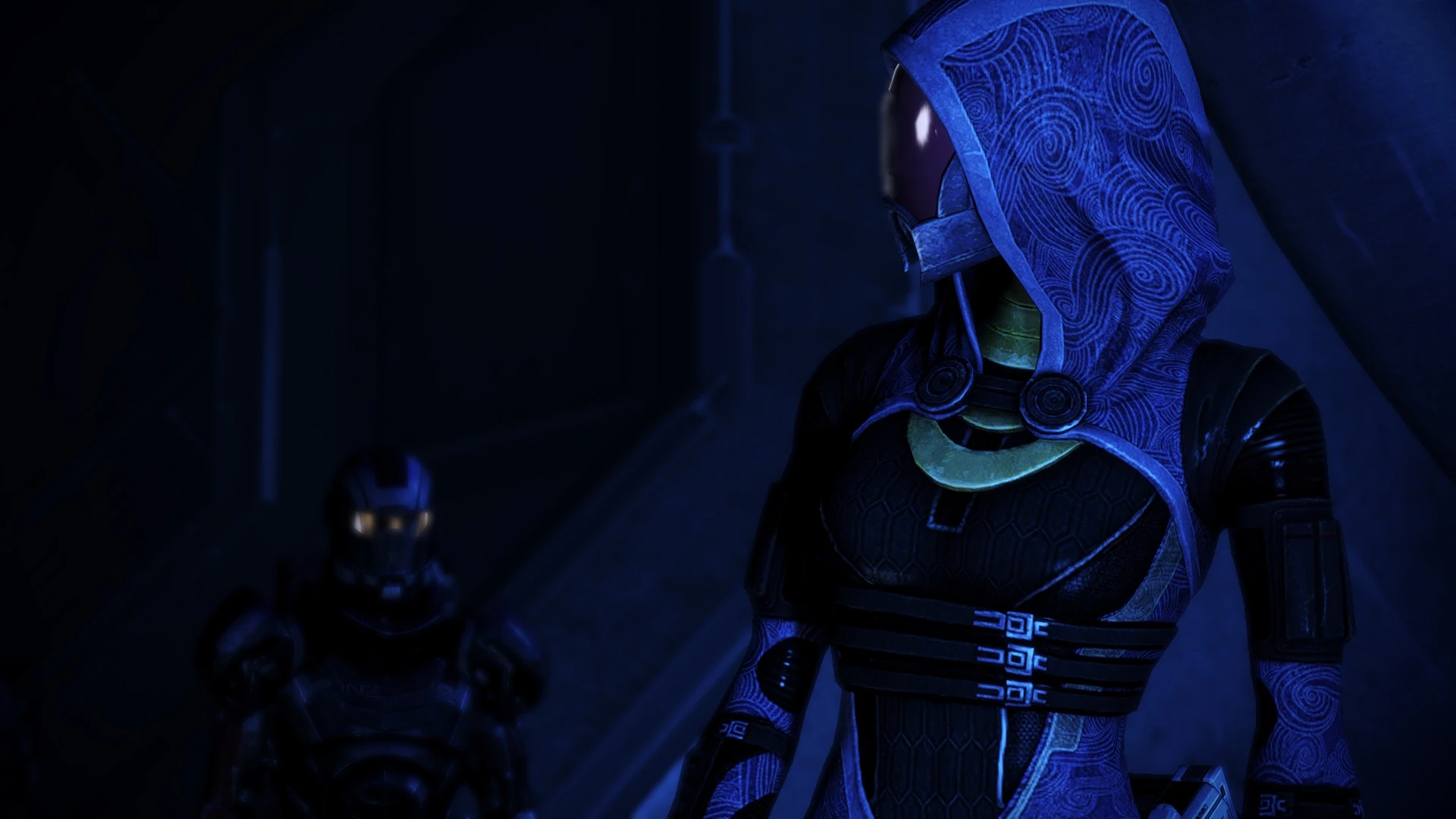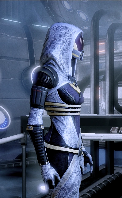 - Weder während Mass Effect noch während Mass Effect 2 sieht man Talis wahres Gesicht.
