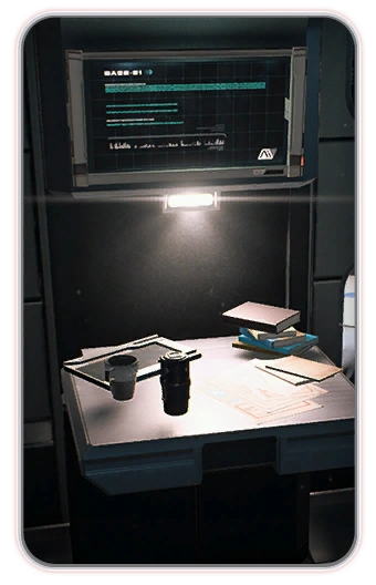Je me situe physiquement dans un serveur installé dans le bloc SAM de l'arche Hypérion, mais la technologie des ansibles permet de rester en contact instantané quelle que soit la distance. En cas de blessure incapacitante ou de décès, les protocoles exigent que je transmette l'accès à mes commandes au Pionnier choisi pour prendre la succession de l'ancien. Un déverrouillage récent de ma mémoire a permis de mieux comprendre les circonstances de ma création. Alec Ryder m'a en partie conçu pour empêcher sa femme, Ellen Ryder, de succomber à une maladie incurable, dans l'espoir que mon aptitude à altérer la physiologie d'un hôte puisse augmenter l'espérance de vie d'Ellen ou l'aider à trouver un remède. Bien que cette idée n'ait pas porté ses fruits, Alec Ryder a cependant intégré cette aptitude à mes fonctions de base. |