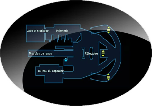 Dans la salle des machines, se trouve le propulseur Tantale et le puit thermique du Normandy.Sur ce pont, se trouve aussi le garage contenant le M35 Mako