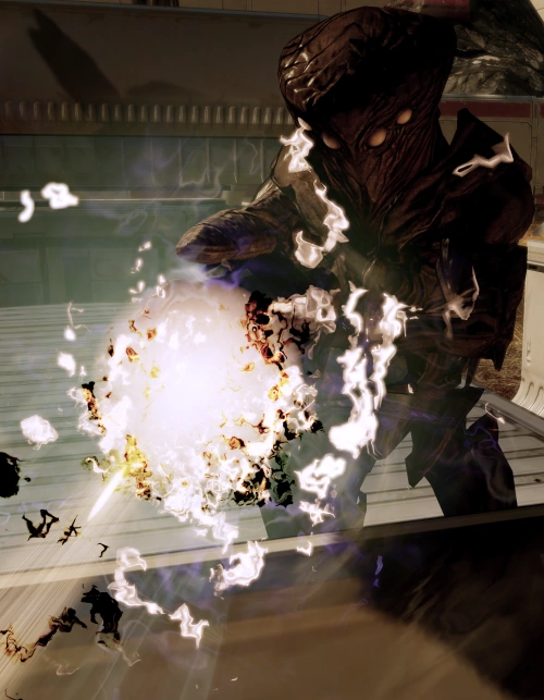 - I Collettori assassini sono quasi sempre al riparo e a distanza, solitamente dietro altre truppe dei Collettori. Usano il loro Raggio particellare come fucile di precisione, sparando lunghe raffiche per polverizzare i loro nemici. Quando lavorano insieme all'Araldo, l'assassino è davvero pericoloso; il suo Raggio particellare ti terrà a bada mentre l'Araldo si avvicina, permettendogli di colpirti con il suo attacco per farti uscire allo scoperto, lasciandoti quindi esposto al letale fuoco dei Collettori. Pertanto, puoi prendere in considerazione l'idea di dare la priorità agli assassini, soprattutto prima che l'Araldo si mostri. Il contro-cecchinaggio, la combo Attrazione-Lancio, e le Munizioni incendiarie sono tutte utili per fermare o uccidere l'assassino dopo che le sue barriere sono state eliminate. Saccheggio è particolarmente utile, potendo eliminare le barriere di un assassino così come far uscire allo scoperto un assassino senza barriere o arrestare temporaneamente il suo fuoco con il suo effetto stordente. Anche Deformazione è utile per distruggere le loro barriere biotiche, infliggendo danno e uccidendo potenzialmente l'assassino (se ha barriere biotiche basse) e altri Collettori.