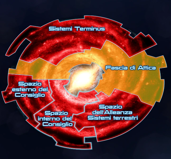 Situata vicino agli anarchici Sistemi Terminus, la Fascia di Attica è la vera frontiera dello spazio controllato dalla Cittadella. L'area contiene molti pianeti un tempo abitati dai Prothean e molti portali galattici si trovano in tutti i sistemi della Fascia. I coloni stabilitisi nella Fascia sono soggetti a continue incursioni e attacchi provenienti dai vicini Sistemi Terminus, ma la presenza di diversi mondi ricchi di risorse e rovine Prothean, continua ad attirare l'interesse coloniale.
