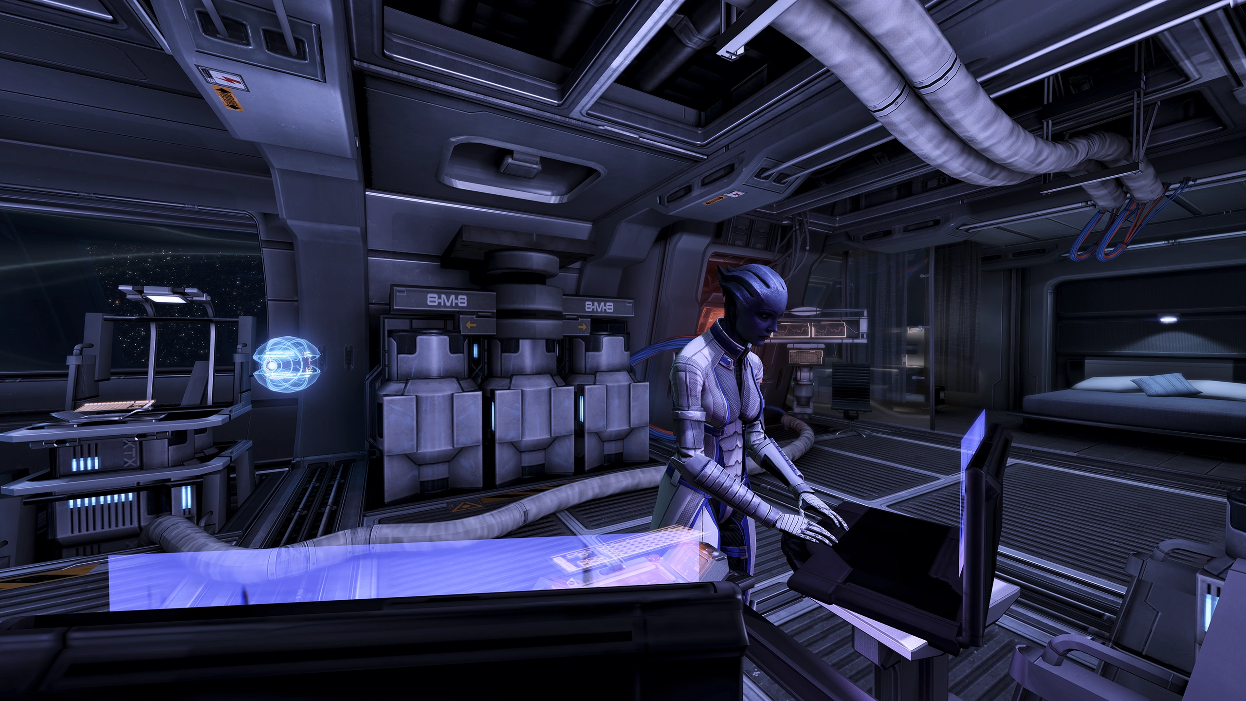 A bordo della Normandy SR-2, il Comandante ha una foto di Liara vicino al terminale privato nella cabina di Shepard. Se Shepard rimane fedele alla loro relazione, il Comandante osserva la foto di Liara durante il viaggio verso il portale di Omega 4.