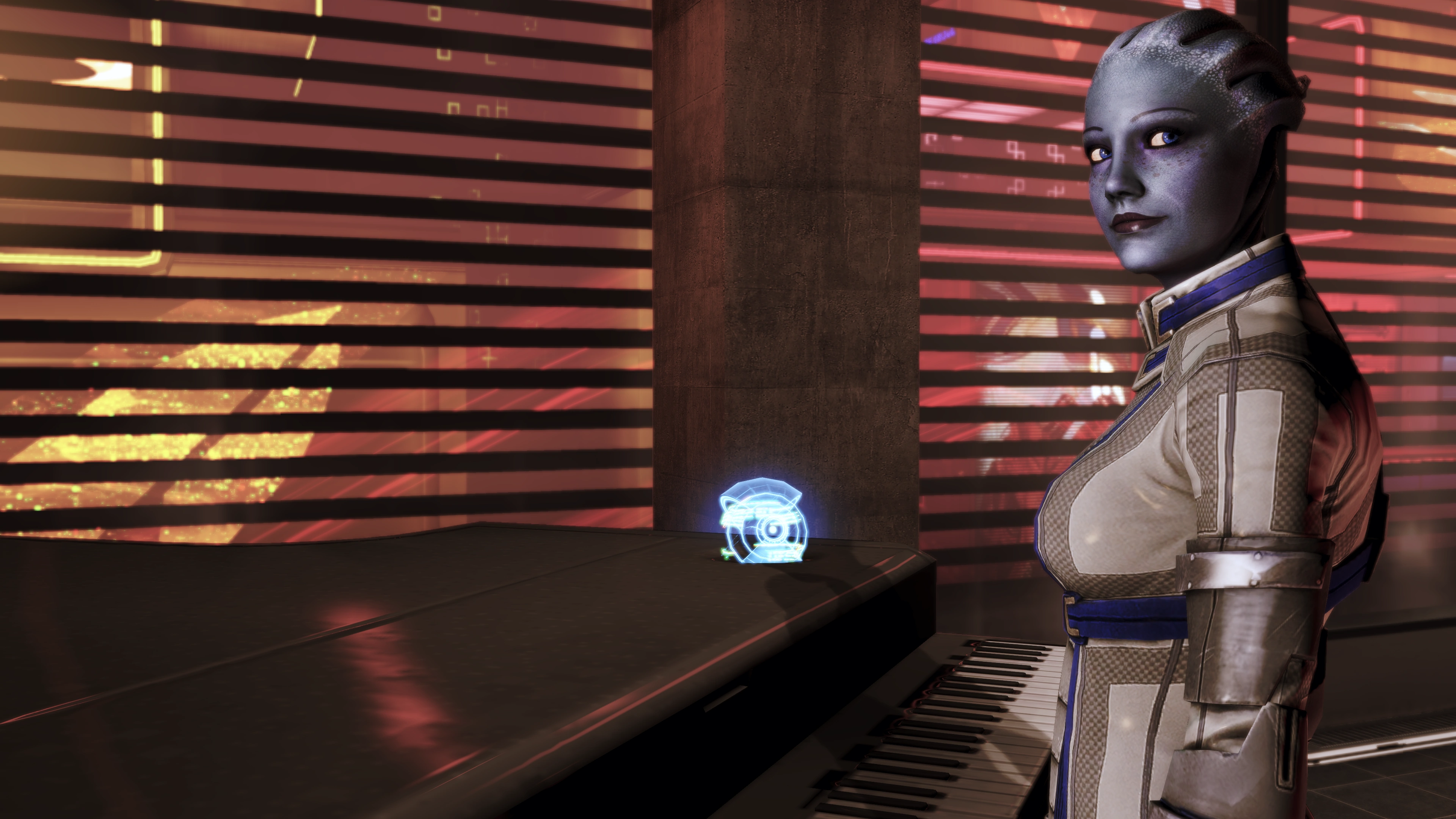 Shepard può anche invitare Liara al suo appartamento personale. Quando arriva, Liara comincia a suonare il pianoforte che si trova al primo piano. Quando le viene chiesto della canzone che sta suonando, dice che è l'unica che conosce; Liara ha imparato la canzone da una collega mentre erano intrappolate da una tempesta in uno scavo prothean, e lei aveva bisogno di qualcosa con cui occupare il tempo.