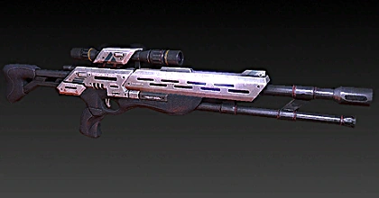 Un fucile di precisione militare a fuoco rapido, incredibilmente preciso e letale a lungo raggio e apprezzato da infiltratori e assassini. Molto efficace contro le corazze, e piuttosto efficace contro scudi e barriere biotiche. L'evoluzione del fucile di precisione Mantis.