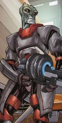 W tym momencie Feron zaalarmował Liarę o nagłym ataku. Pomimo prób powstrzymania asari, które skończyły się jedynie opóźnieniem salarianina przez drella, kobieta ucieka wraz z ciałem na pokładzie jego statku. Zabójca ostatni raz widziany jest przez Liarę gdy ten powala Ferona na ziemię i bije go po twarzy do krwi.