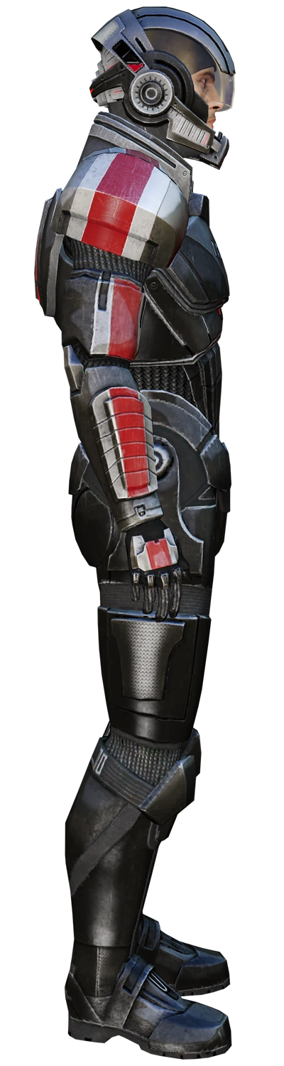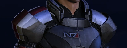 В Mass Effect броня N7 не существует отдельно: красно-белые полосы и символ программы появляются на броне Шепард(а) при экипировке комплектом брони «Оникс».