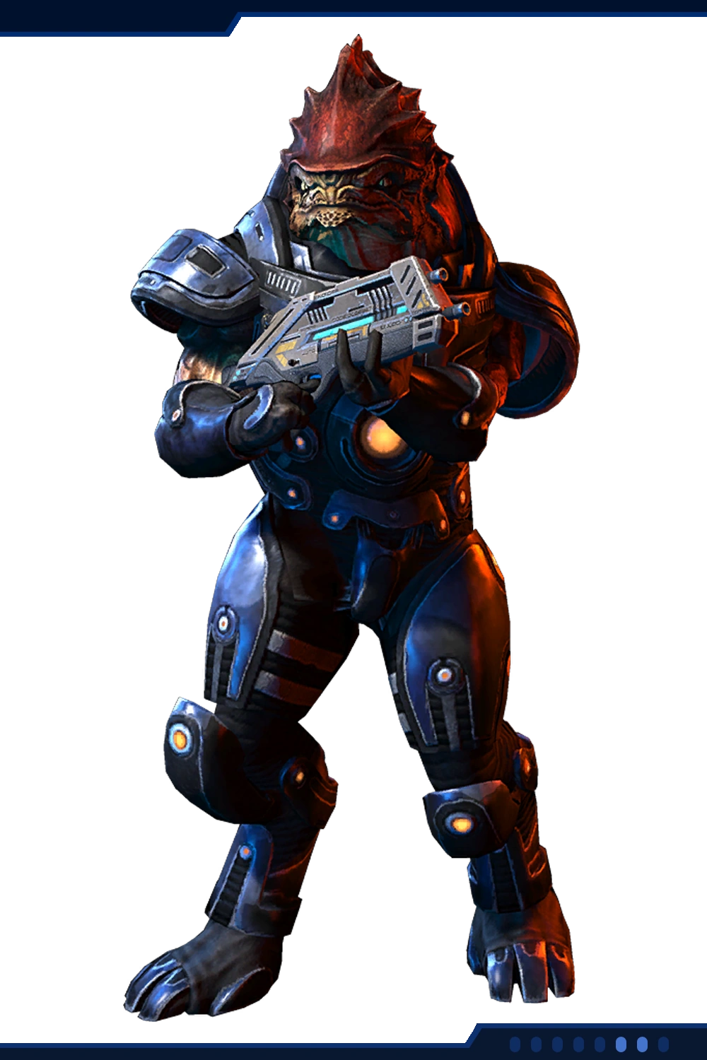 Взбешённый кроган, бронированный подобно танку, заставит врага по-новому понять слово «боль». Неудивительно, что он может выстоять под таким же плотным огнём, который способен сам обрушить на противника.