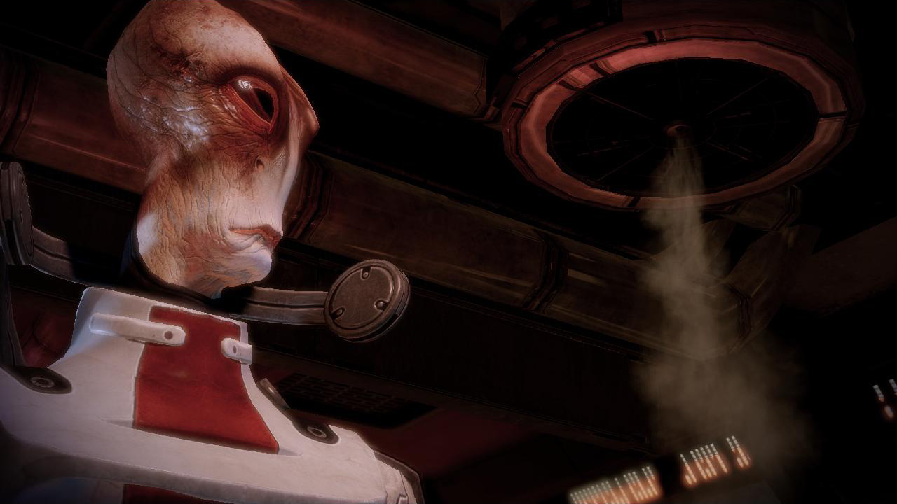 Нашёл крогана в трущобах. Первый выстрел пробил основное сердце. Но у крогана излишняя нервная система. Почуяв, что это слишком, занервничал сам. Кроган вцепился мне в глотку. Использовал Воспламенение. Удачно. "Сказали - простая работа", - прохрипел он. Думал, сгорим оба.