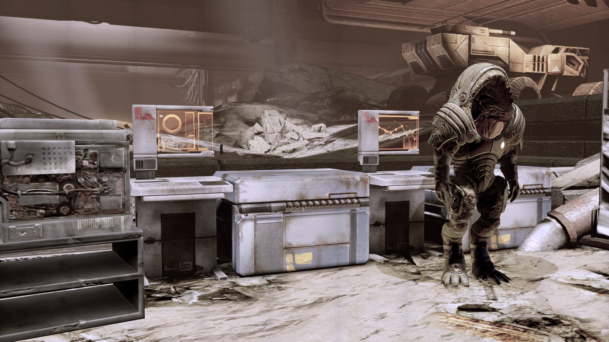 Во время беседы с торговцем Рэтчем появится возможность узнать о пыжаках, космических паразитах, похожих на обезьян. Кроганы страдают от их набегов, ведь исчезает все, до чего могут добраться назойливые твари: еда, ринкол, инструменты, детали и прочие вещи. В качестве меры борьбы кроганы используют стационарные орудия. Помимо избавления от вредителей, это еще и средство развлечения.