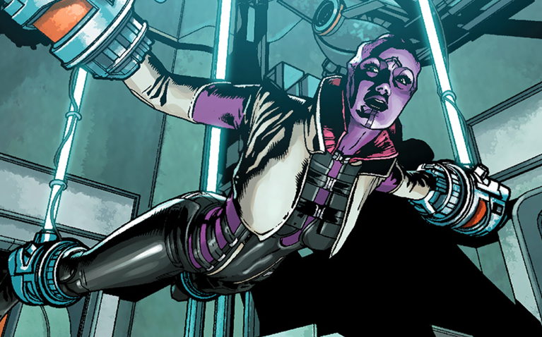 Following the disastrous incident with Paul Grayson, Aria T'Loak leaves for Thessia to bury her daughter Liselle. Upon her return to Omega from the asari homeworld, she finds that one of her banks had been robbed by a joint coalition of the Grim Skulls, a local merc group, and the Biotic Underground, a biotic supremacist organization. One of the Grim Skull mercs, Shella, has been captured in the heist. In a plea for her life, Shella claims to have knowledge of Liselle's death. Prior to joining the Grim Skulls, Shella freelanced; one of the jobs she participated in was with a Cerberus operative named "Manning" (one of Kai Leng's aliases). Shella then relates the actual events of Liselle's death (as depicted in Mass Effect: Retribution). Aria believes Shella's story enough to let her go rather than executing her.