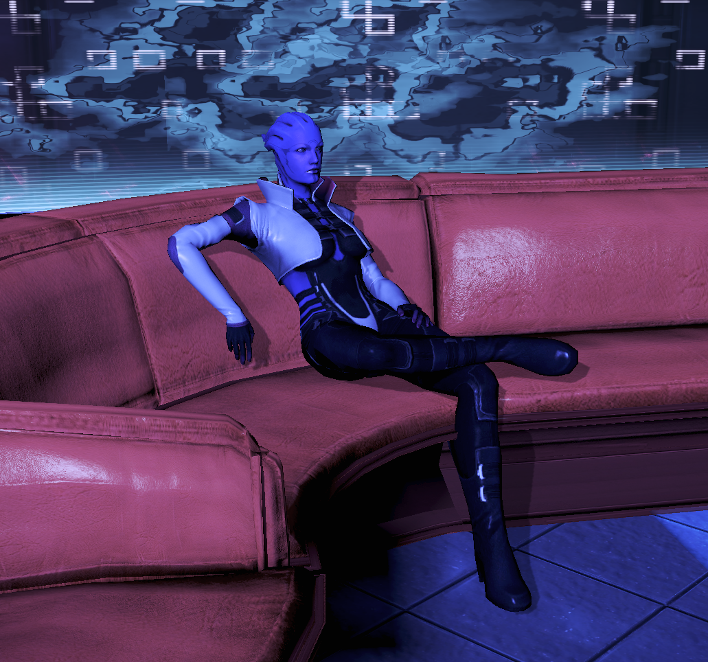 When asked about her current situation, she snaps at Shepard for finding it funny. She angrily states that her confinement to the Citadel with a poor excuse for a nightclub, the constant watch of C-Sec, the lack of Noverian Rum, etc is making life hell for her. She swears revenge against Cerberus for stealing Omega from her.
