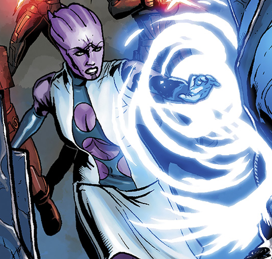 Aria T'Loak is the de facto ruler of Omega, the nominal capital of the Terminus Systems. Also known as the "Pirate Queen" of Omega, Aria is fiercely possessive of the space station and will do anything to protect it and maintain her dominance.