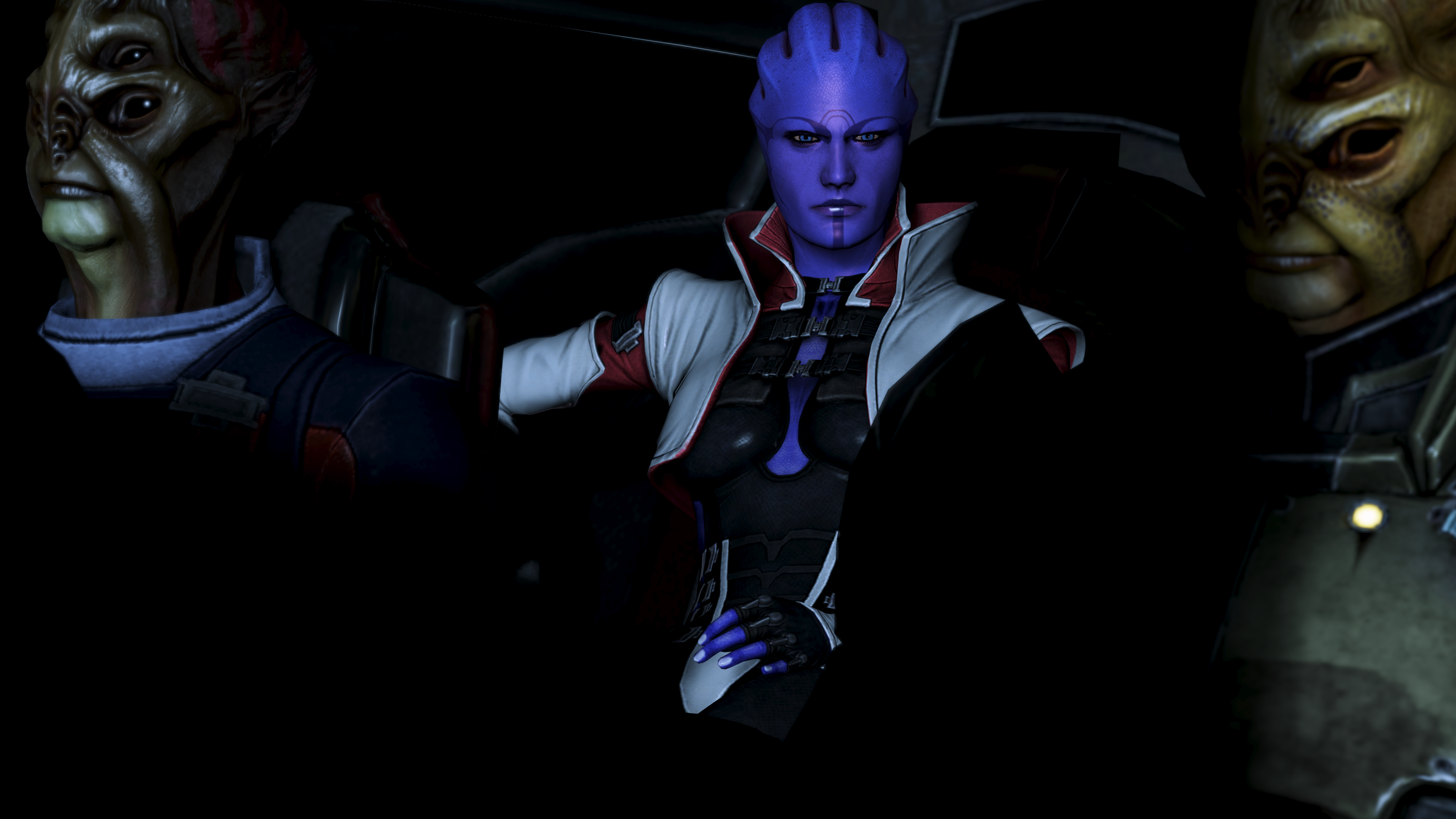 Aria takes you on a skycar joyride around the Presidium for privacy reasons due to the sensitive nature of the upcoming operation. She has assembled a fleet to punch through the Cerberus ships guarding Omega, although the real war will be fought on foot through the station.