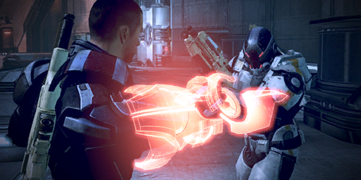 It was long thought that personal weapons had plateaued in performance, but the geth proved all theories wrong. Mathematically reviewing their combat logs, the geth found that in an age of kinetic barriers, most firefights were won by the side who could put the most rounds down-range the fastest. But combatants were forced to deliberately shoot slower to manage waste heat, or pause as their weapons vented.