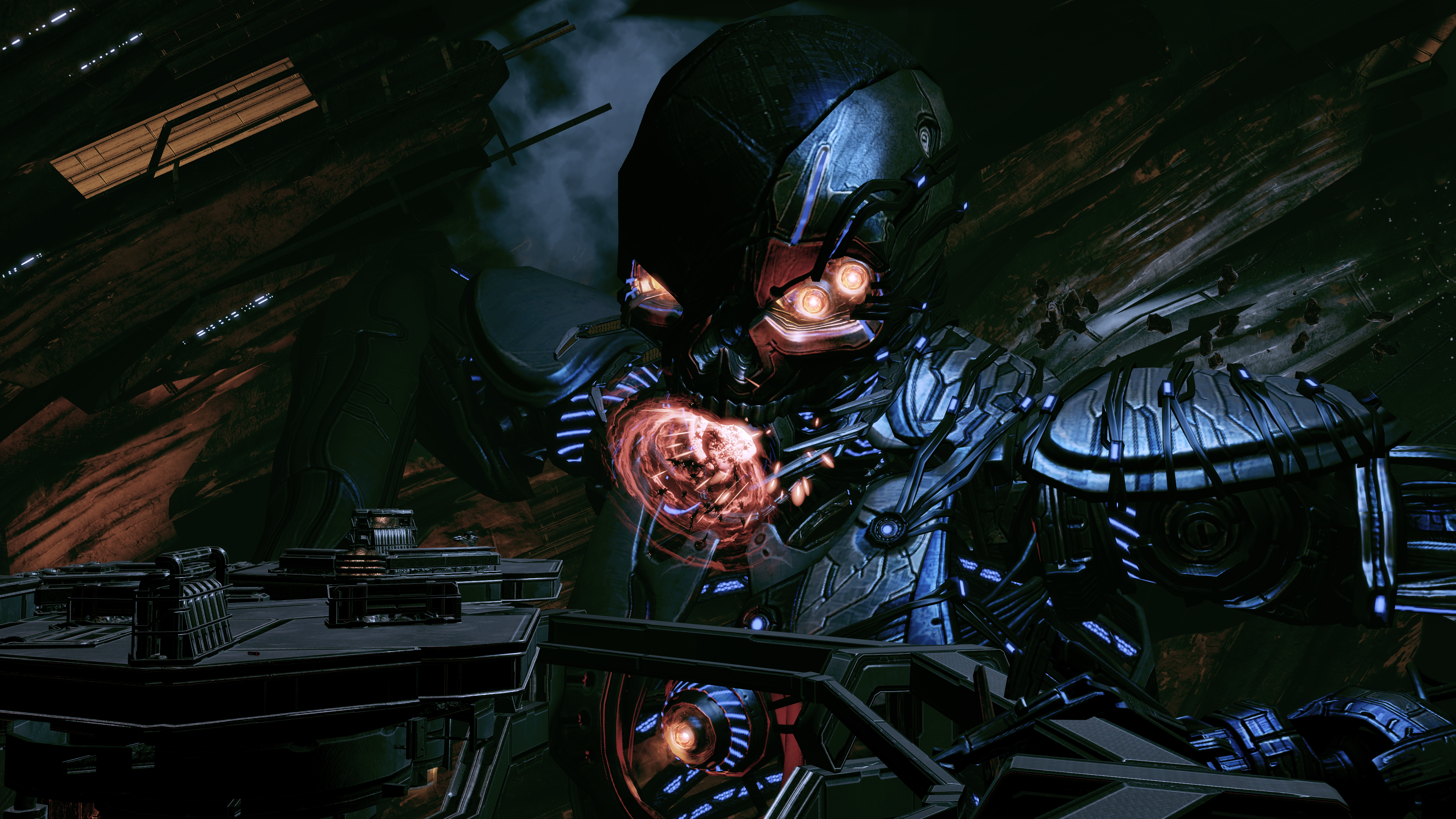 As it turns out, the Human-Reaper isn't dead yet. After your decision on the Collector Base's fate it reactivates and hauls its way up to your set of platforms to do battle with you.