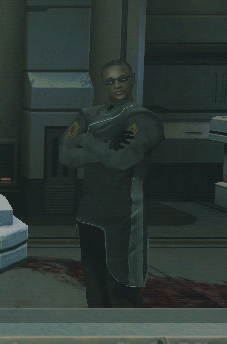 In the chaos of escaped prisoners caused by Randall's actions, the Director personally supervises the execution of one particular escapee who managed to inflict considerable casualties. He and a couple of his lackeys watch and laugh from the other side of a large empty room as the hapless turian prisoner gets a turret deployed on his coverless position.