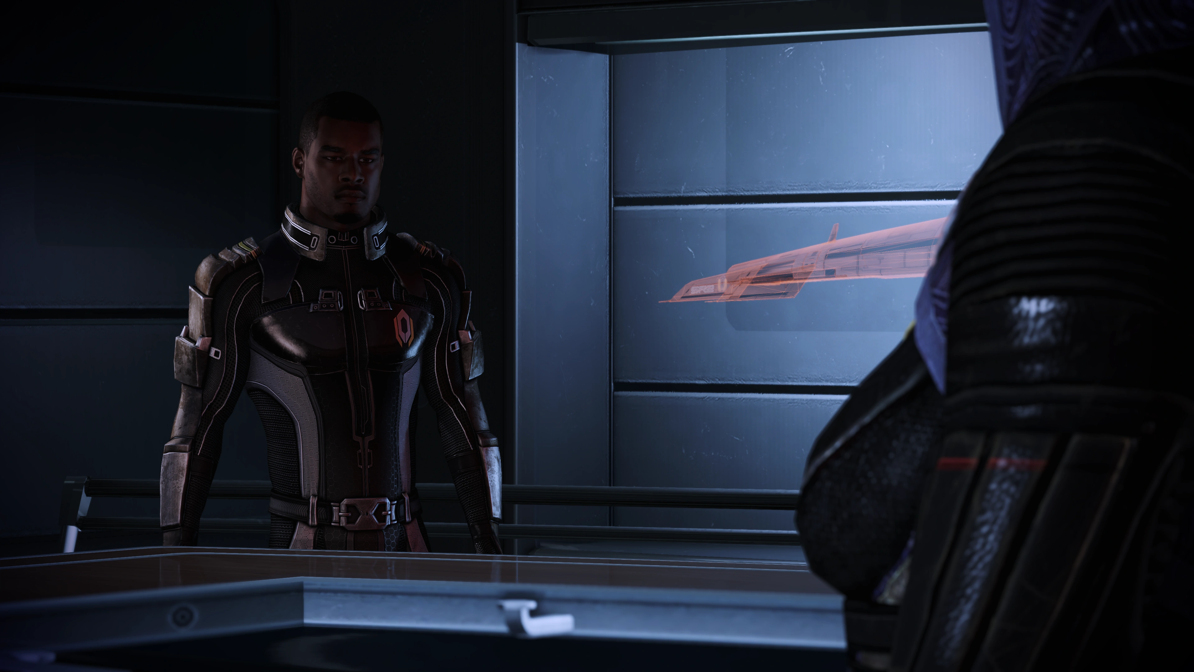 Jacob greets Tali in the briefing room and welcomes her aboard. She is thankful for their timely rescue but she has concerns about working with Cerberus. Once you alleviate her concerns, she says that she will be in Engineering. On her way out, Jacob tells her to introduce herself to the ship’s AI, EDI; Tali responds only with a wordless glance.
