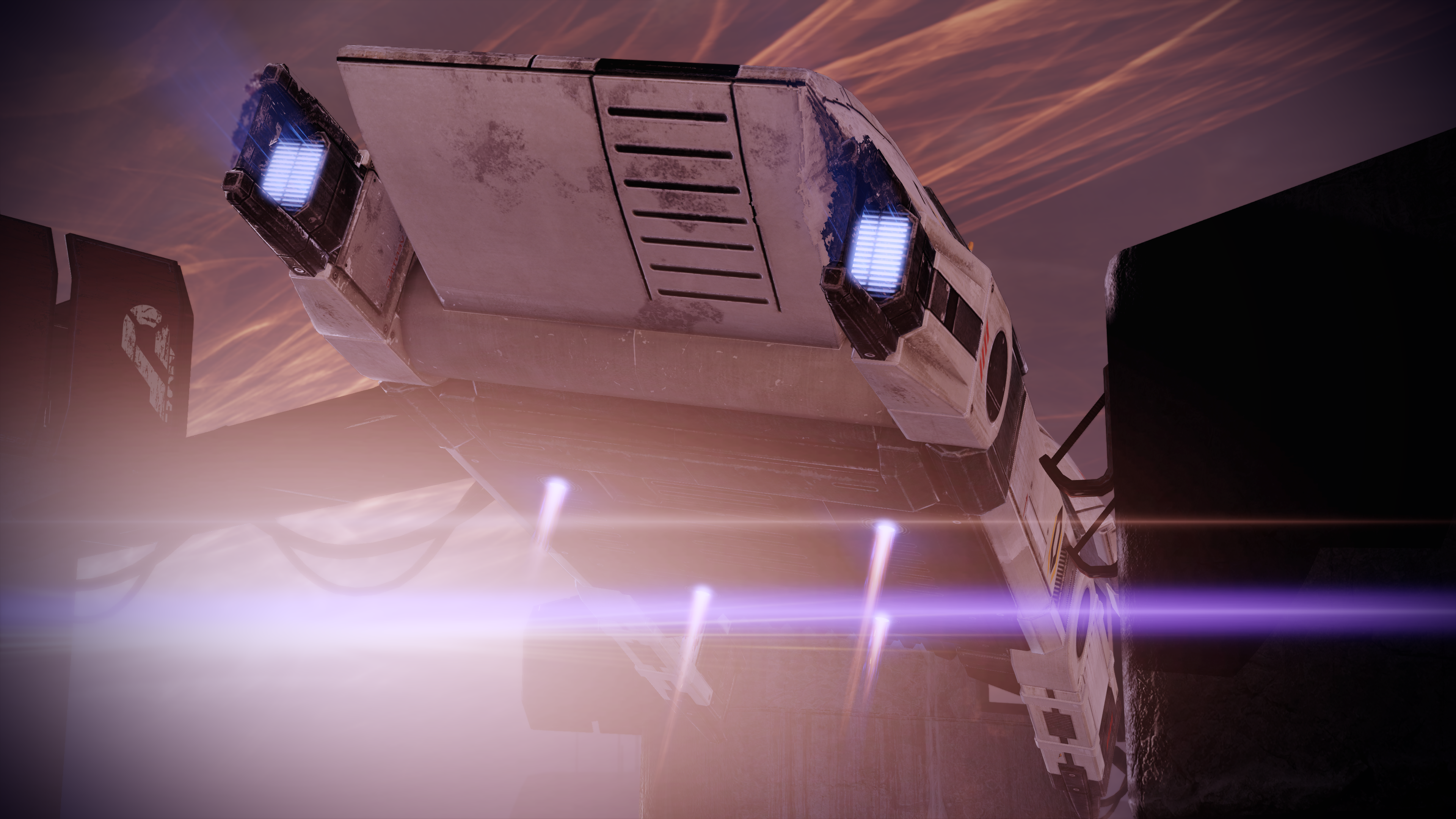 Vanguard Exploit: After opening the shutters, a Vanguard can move to the left window's corner and Charge to the Colossus, which will be interrupted by Kal'Reegar telling Shepard to stop, triggering his dialogue. After conversing with him, the Colossus will be glitched and will no longer fire upon Shepard. It is possible to charge to the Colossus again, where you may attack it freely for a while before geth troops begin spawning from two exits of the wall behind the Colossus. You may also call your squadmates to your position by the Colossus, though they may not survive as you attempt to take it down. Other geth may also be glitched by Charging from the window, usually those near Kal'Reegar.
