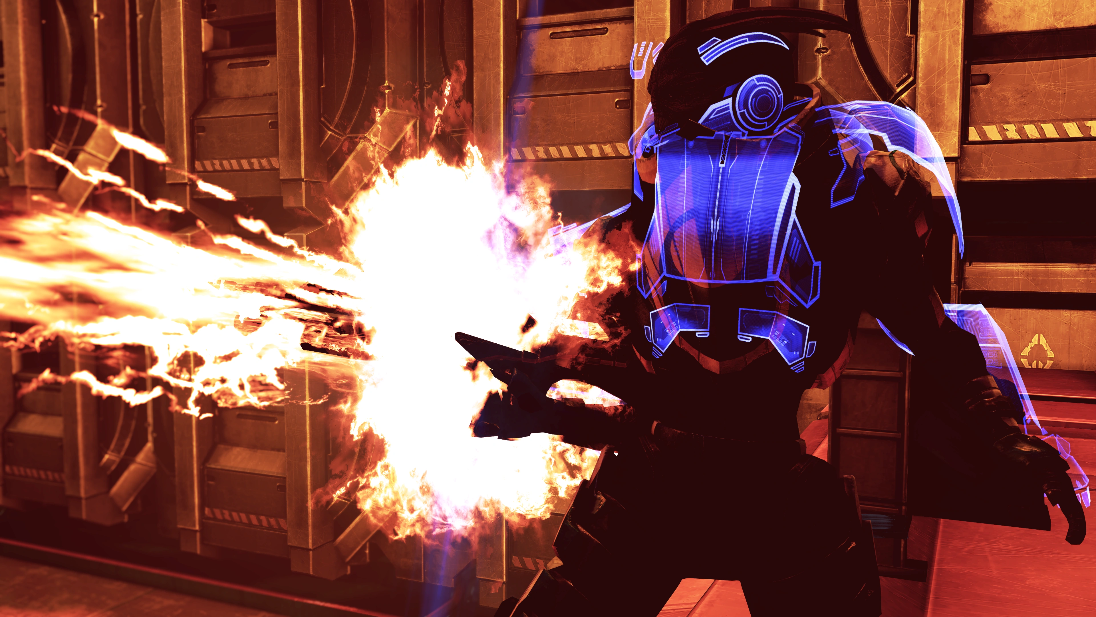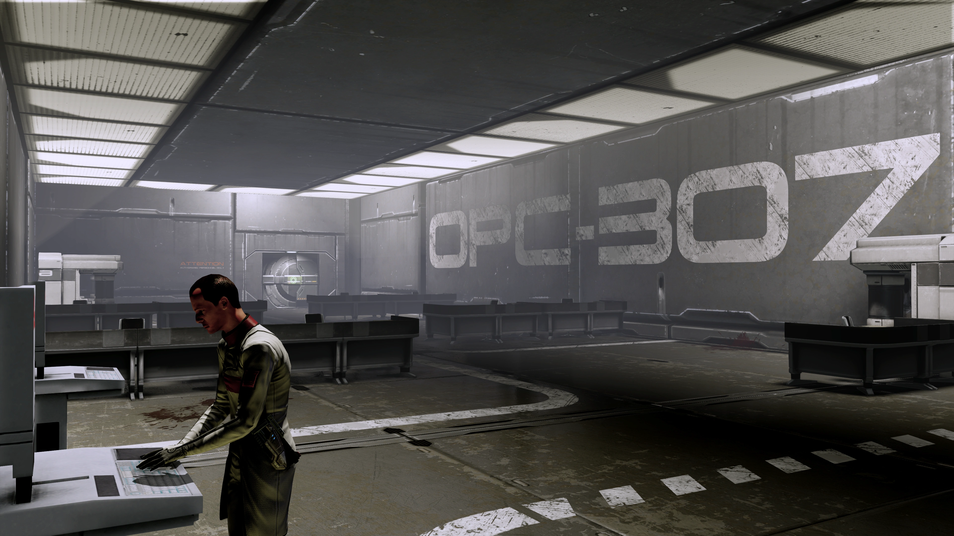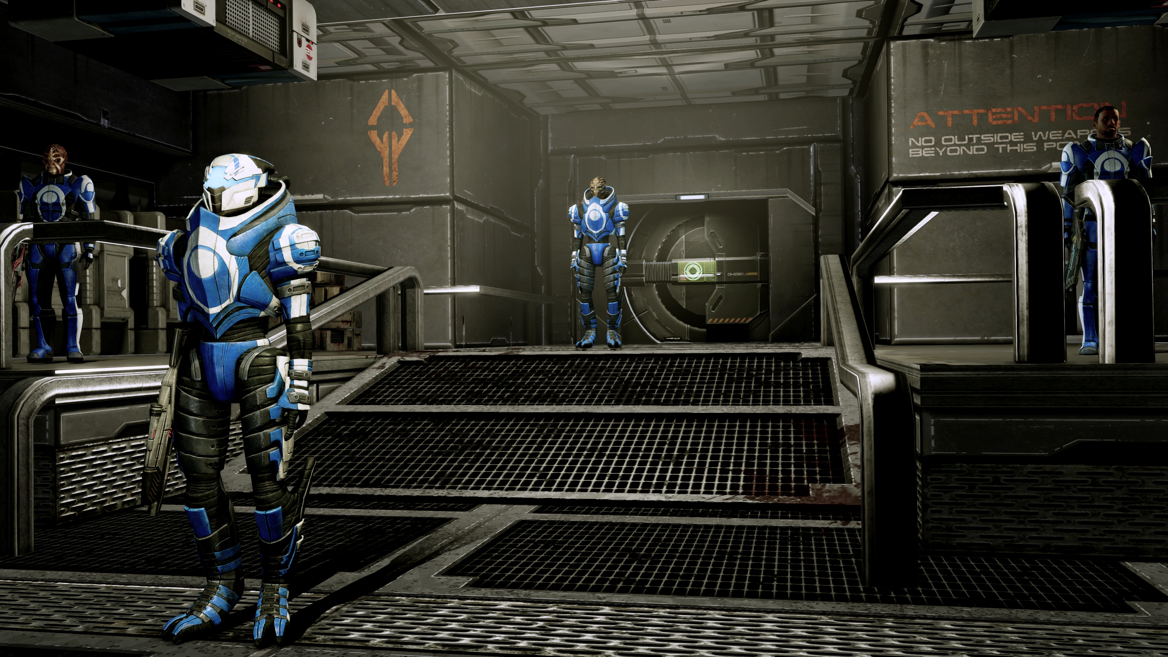 The mission starts with a cutscene of the Normandy's arrival, and Purgatory's commander watching the event then preparing to welcome the visitors. When you gain control simply approach the trio of Blue Suns mercs at the end of the corridor to trigger a conversation. As this is supposed to be a simple transaction, you won't be able to draw weapons and shoot anything for now.