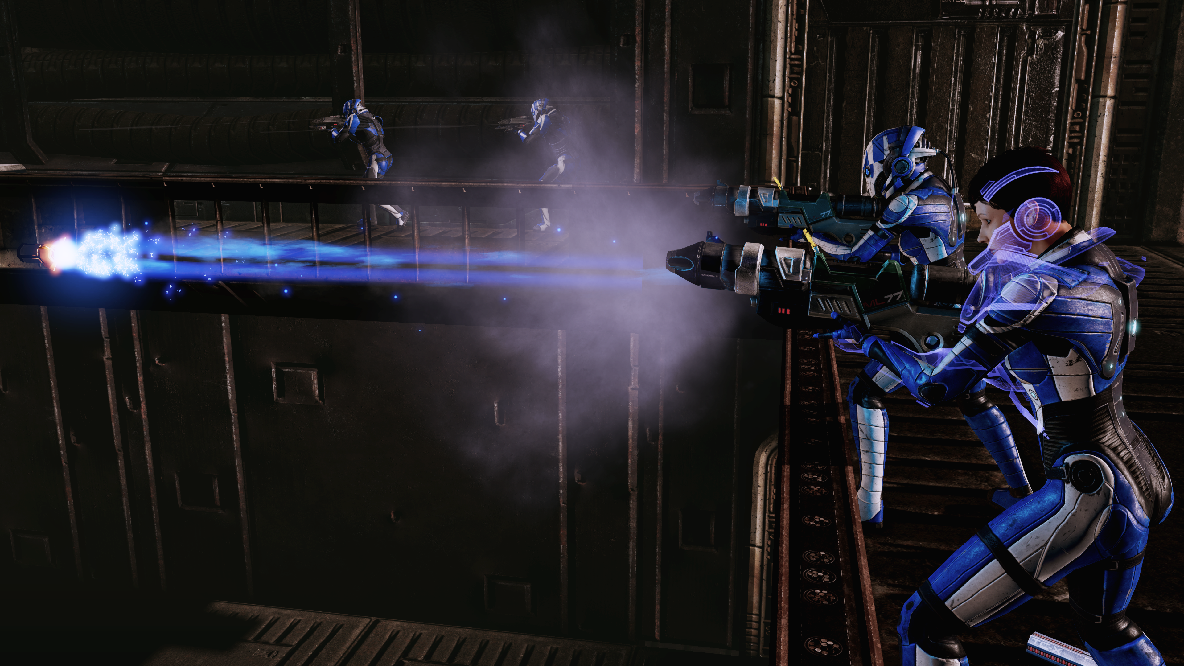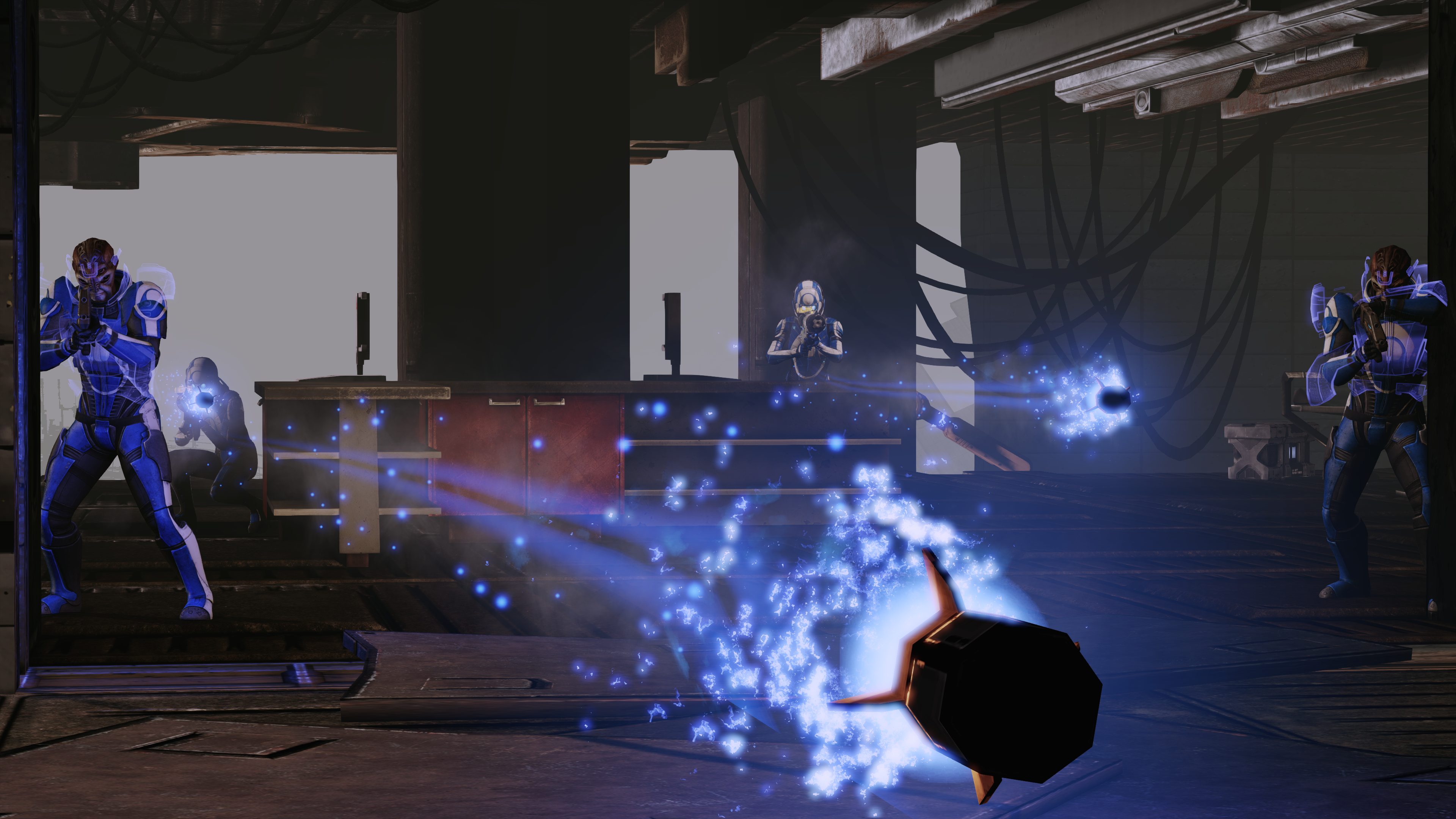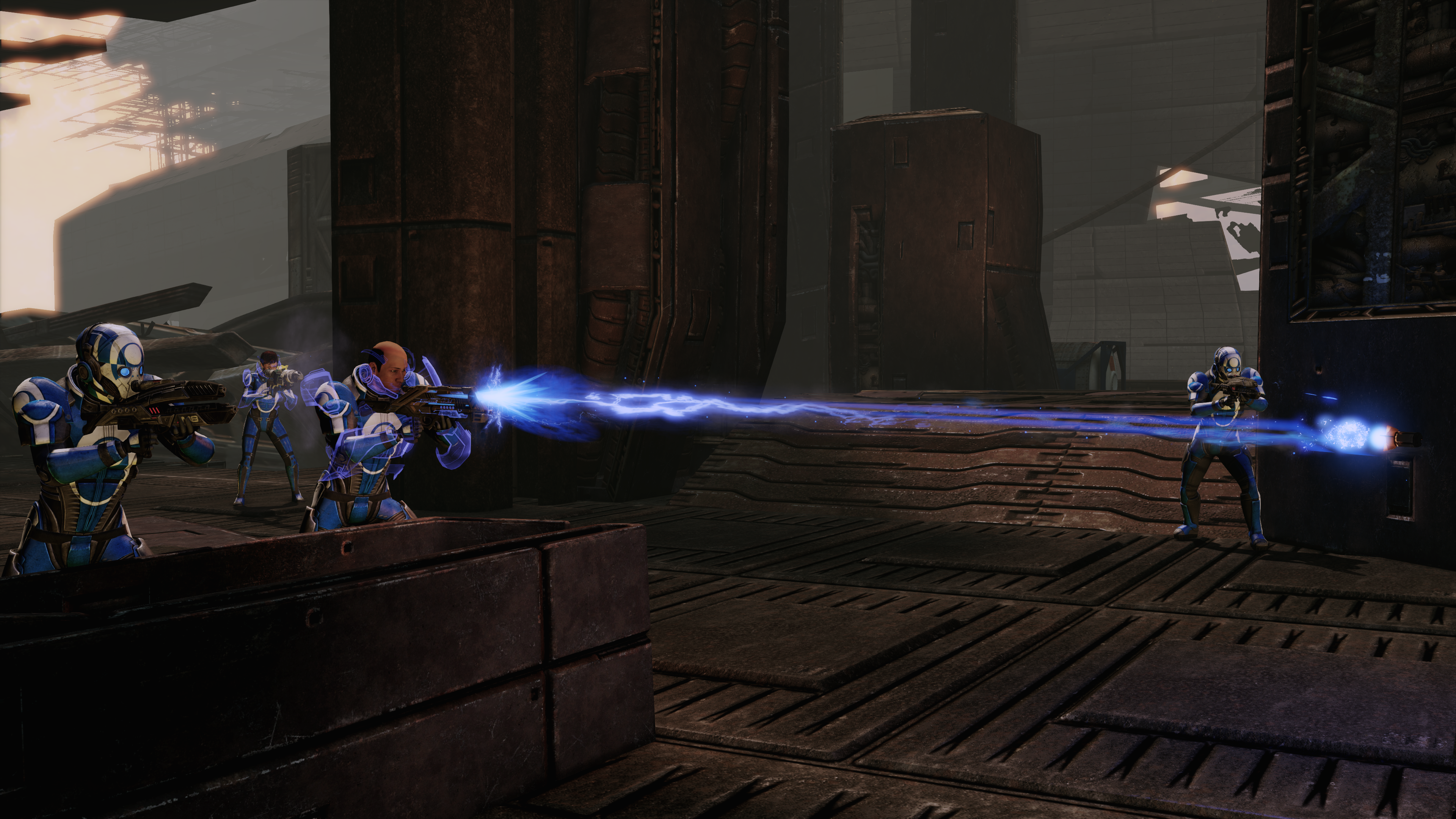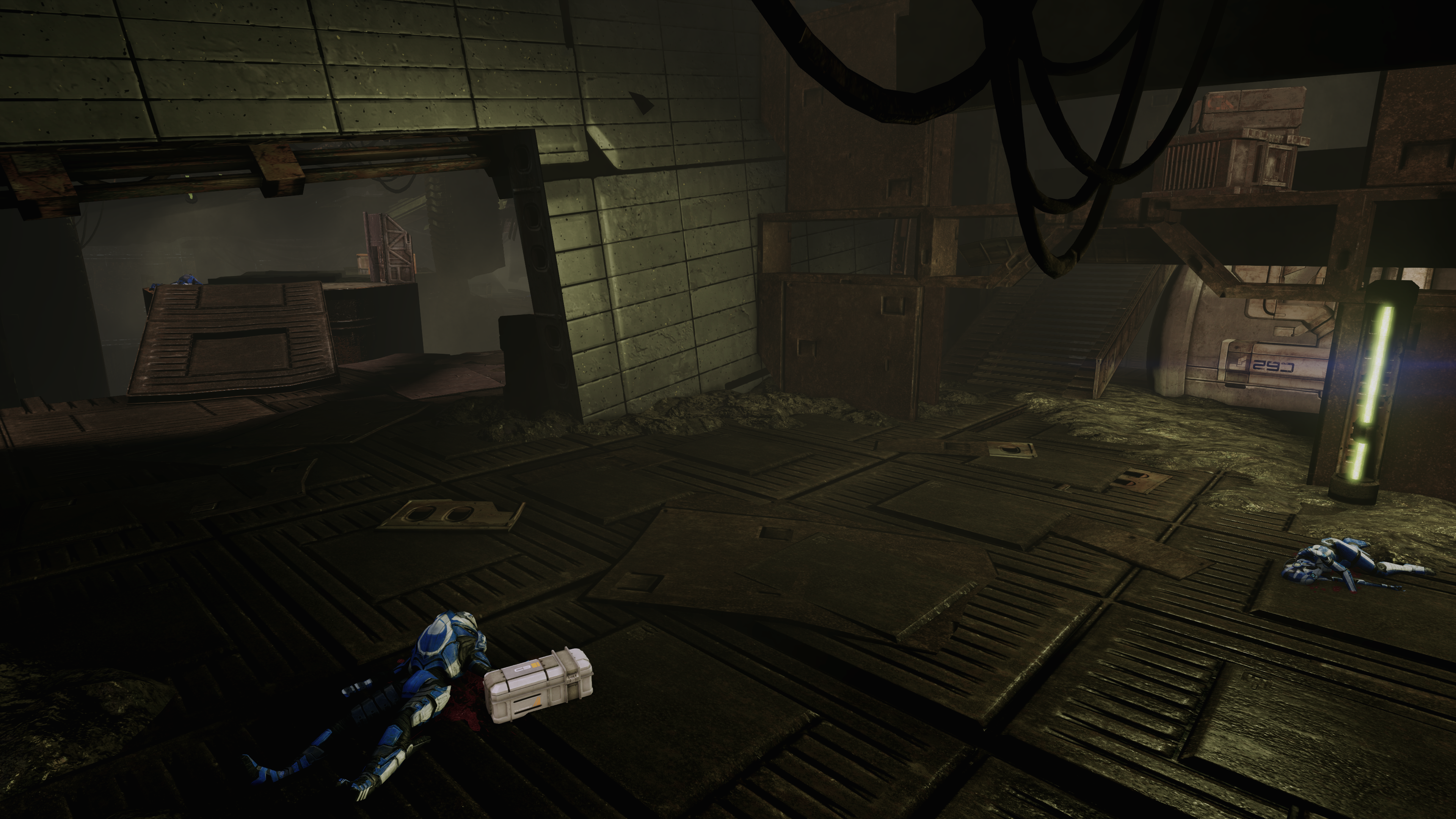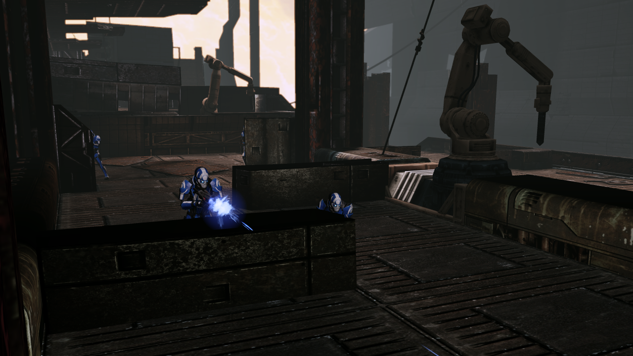 The area after this is two square rooms guarded by an initial two Troopers, then from the second room's door emerge two Troopers and two Heavies, followed by another Trooper plus a Blue Suns Centurion.