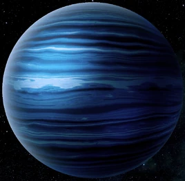 An ice giant, Doz Atab ("sky warden") has a bluish tinge from its hydrogen-methane atmosphere. Its axial tilt causes its seasons to vary wildly in temperature.