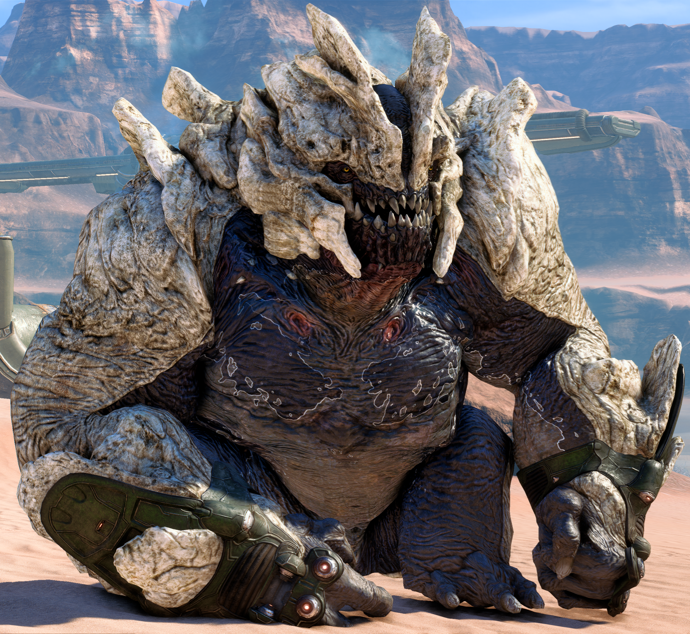 Fiends are monstrous beasts with a heavily armored carapace. Unlike the stealthier Wraiths, Fiends are besieging units that attack head-on, scattering enemy forces and destroying entrenched enemy positions. They attack non-kett without appearing to need orders; some scientists believe Fiends respond aggressively to an absence of kett pheromones or similar cues.