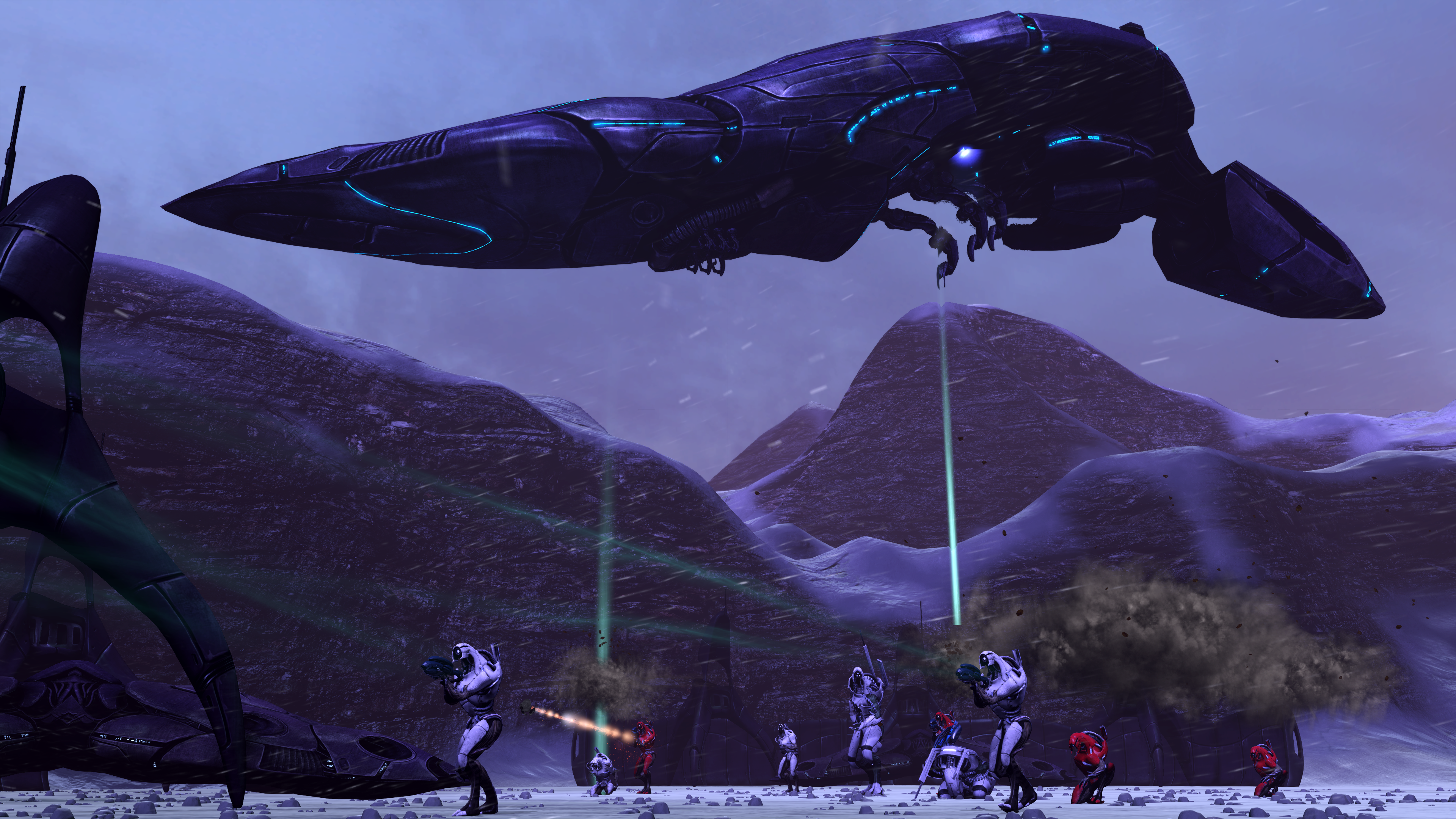 If Admiral Hackett's directive to eliminate geth outposts is pursued, the Commander's team may encounter numerous dropships on uncharted planets. While other vessels perform quick troop drops before flying away, the dropship on Casbin in particular stays put over the battlefield, vulnerable to small arms fire.
