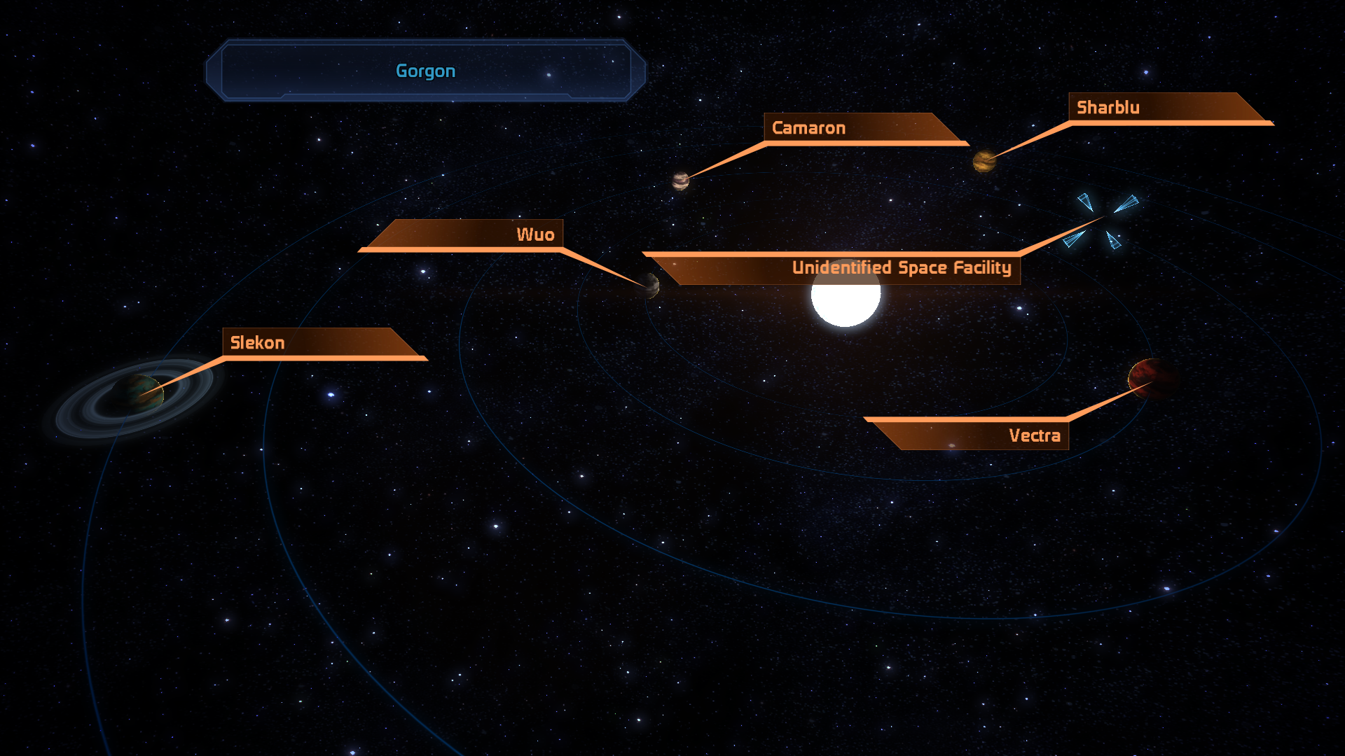 The system is named after the gorgons of Greek mythology. Medusa, who was slain by Perseus, is the best known of the three named gorgons. The ancient stories speak of Medusa transforming men into stone when they gazed directly at her. This is reminiscent of how the tidally-locked planets of the system, Wuo and Camaron, have the side that is facing Gorgon perpetually scorched, with the opposite side being completely frozen, thus making colonization impractical at best. Gorgon is classified as a B-type star.