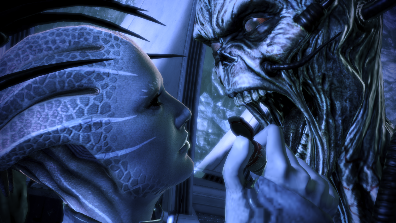 After you have taken down the Banshee, several Cannibals will spawn. There is nothing but ammo to pick up, so refill your ammo and move on. On the other side of the door, a cutscene will play showing an Ardat-Yakshi, Falere, fighting a Cannibal. Either Shepard or Samara will defeat it, leading to a conversation about the Reapers trying to turn all Ardat-Yakshi into Banshees. Falere will ask you to save her sister, Rila, from the Great Hall. Respond however you wish, but no matter which option you choose, Falere will learn about the bomb and rush on ahead of you to save her sister by herself. Samara, if present, will go after her.