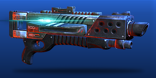 Very rare krogan shotgun. Deals high damage at short range; less effective at long range. Effective against armor, shields and biotic barriers. It is of human design but is only used by krogan, due to the fact that the kickback from a single shot has enough force to break a human's arm. Protected by Fabrication Rights Management (FRM) technology, this weapon is nearly impossible to reproduce and is prohibitively expensive.