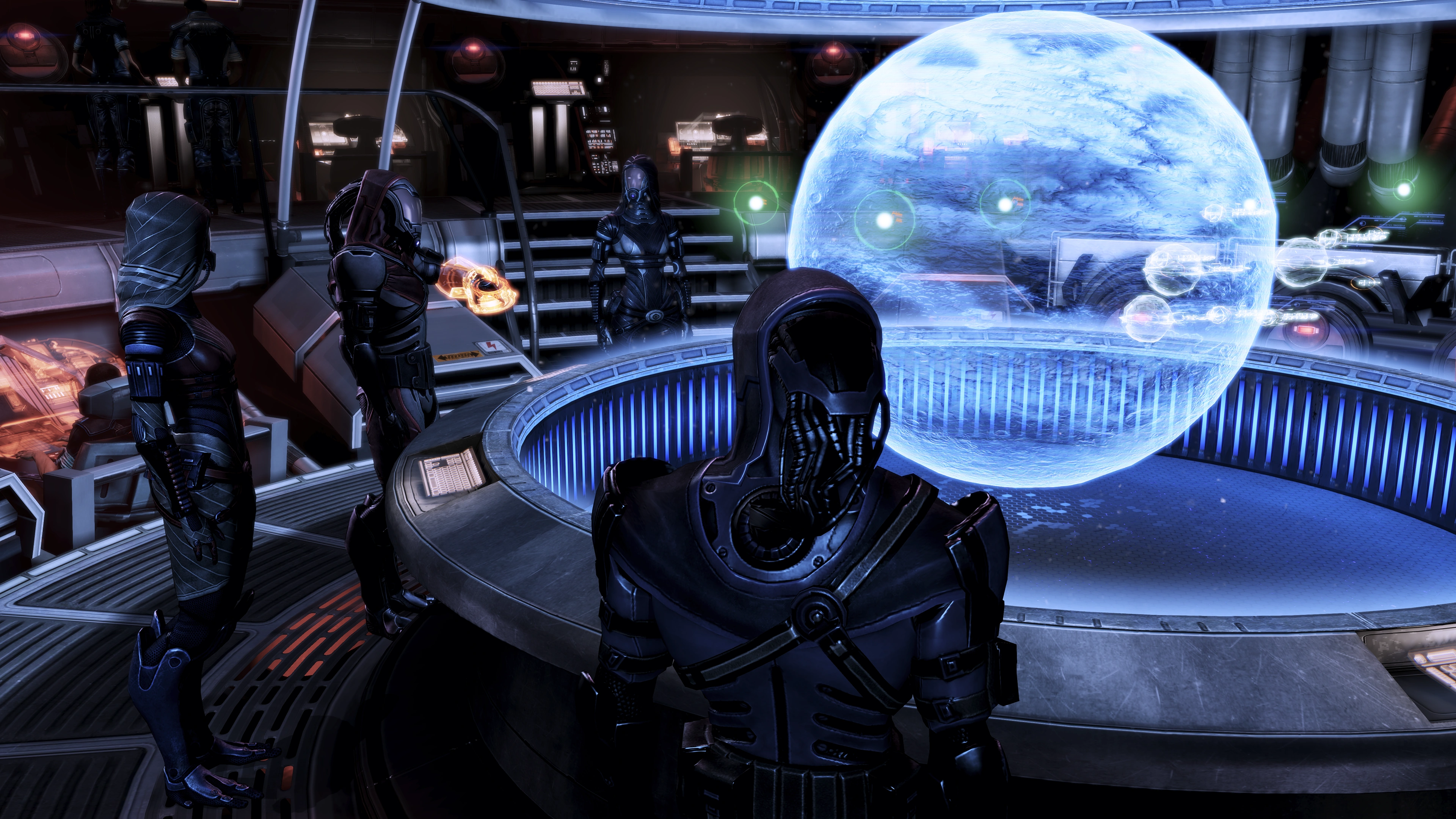After the meeting, Kahlee had a private audience with Captain Mal of the Idenna. He told her soberly that the Migrant Fleet was dying. Although the quarians had maintained zero population growth aboard the Flotilla quite successfully in the three centuries since their exile, their problem was the lack of spaceworthy vessels. They were unable to replace old ships as fast as they were losing them, and within ninety years, their population would be unsustainable. Unfortunately the conservative policies of the Conclave and the Admiralty Board meant little was being done to prevent it, when Captain Mal knew that exploratory missions could be the answer. He asked for Kahlee's help, but was interrupted when the Idenna was attacked by Cerberus and the traitor Golo.