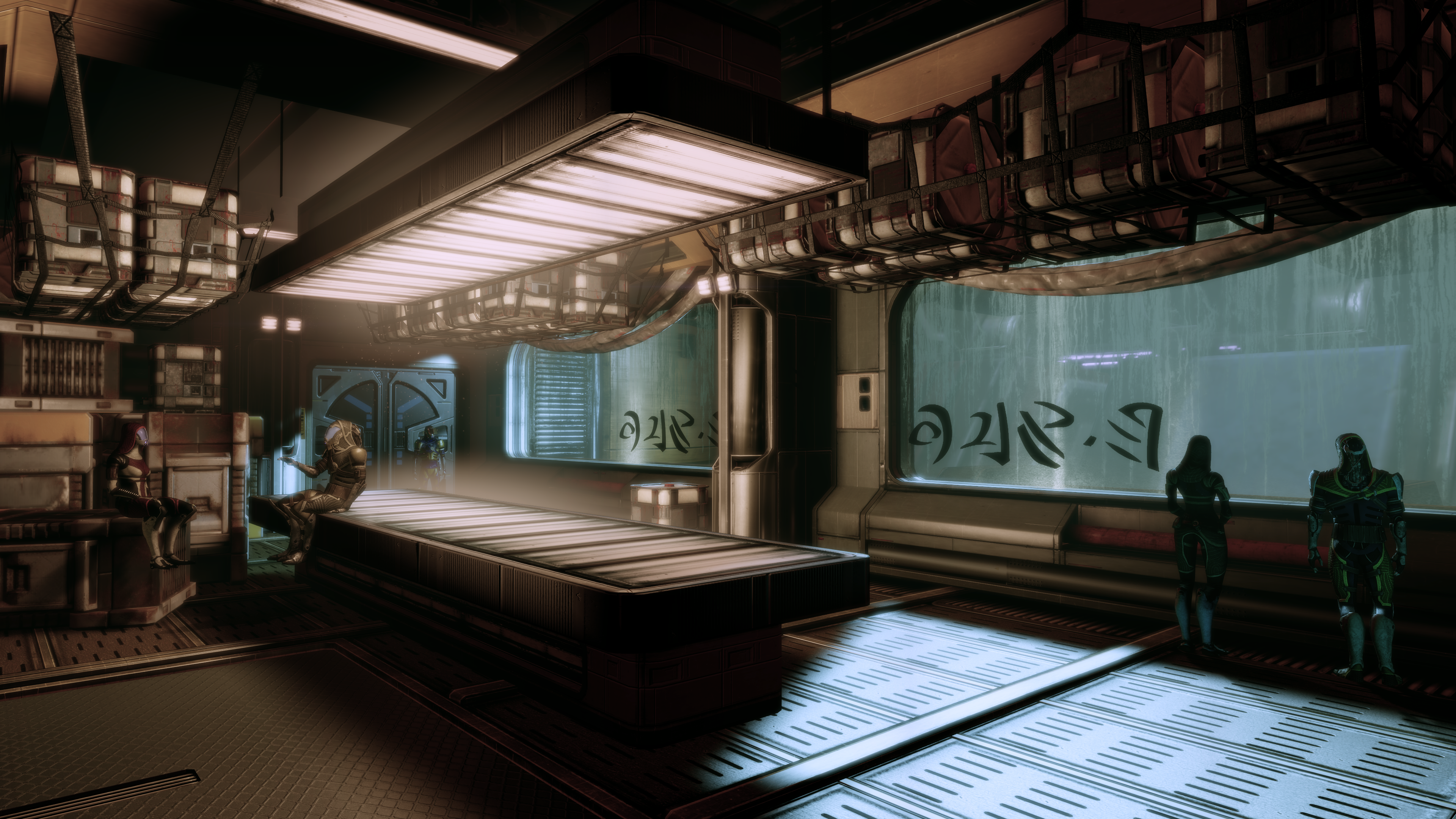 Conditions aboard every vessel in the Migrant Fleet are extremely cramped. One cruiser, the Idenna, had a quarian population of nearly seven hundred, while an Alliance cruiser of comparative size would have only around eighty crewmen. Space is at a premium because of the sheer numbers of quarians living aboard the Flotilla. Captains are also keen to increase the size of their crew, as this increases their status in quarian society. Living space is therefore a priority; the cargo holds of freighters, for example, are converted into small compartments for individuals to live in, often lined with colourful fabrics to make it an individual space and reduce noise.