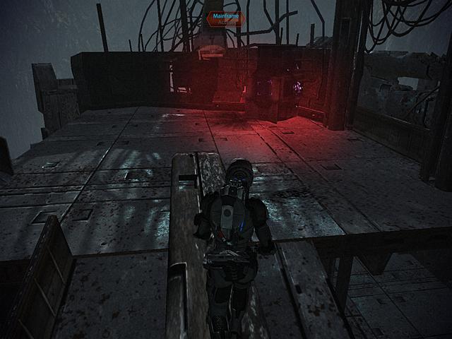 Move across, and further down the ship to the next beam. Crossing it will cause another rocking. Head up the ship to the beam leading down to another container of 500 iridium (and more rocking). Walk down the path to the stairs, and head down them. They will fall behind you as you reach the bottom. Turn around and walk across the path the stairs have created to yet another container of 500 iridium. Take the stairs past the container, and head across the path towards the Mainframe. Step up onto the fallen beam, and walk across to reach it (Shepard may get stuck: see Bugs, below). Interact with the Mainframe to play a cutscene and end the mission.