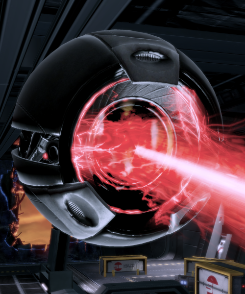 The Oculus' beam weapon is much stronger than an ordinary particle beam, and will blast away any shields or barriers in a moment, especially on higher difficulties. It fires its weapon in very long bursts, thus anything longer than a brief exposure to this weapon could be fatal.