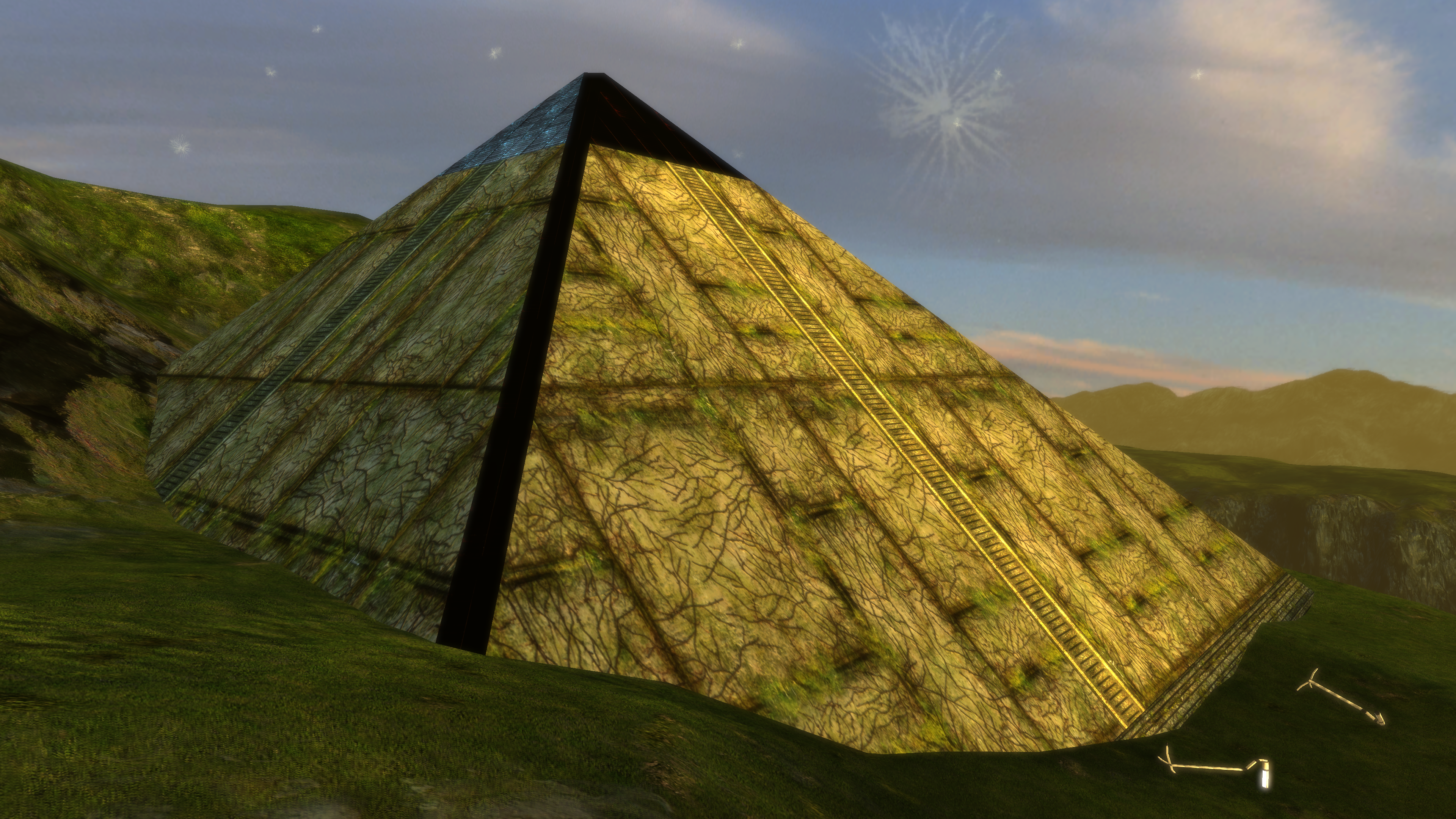 - The Prothean pyramids apparently resemble the title object in The Sentinel, a short story by Arthur C. Clarke, which later evolved into 2001: A Space Odyssey. However the 'sentinel' in the story was a tetrahedron, whereas the structures in the game are square pyramids.