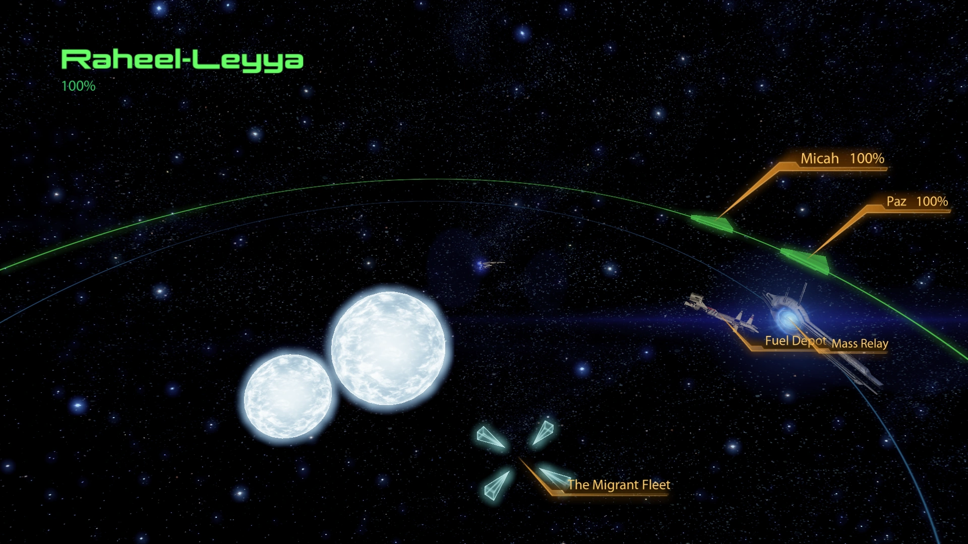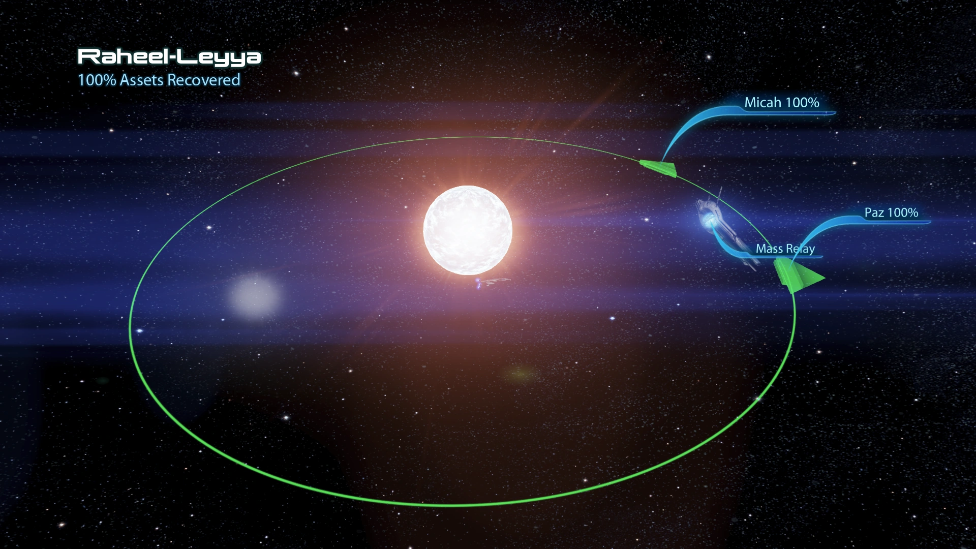 - Although Raheel-Leyya is shown as a binary star system in Mass Effect 2, one of the stars is depicted only by way of a weak, near-transparent lens-flare effect in Mass Effect 3. In the Legendary Edition version of the latter game, the lens flare effects in the system were improved so as to be able to distinguish the two stars.