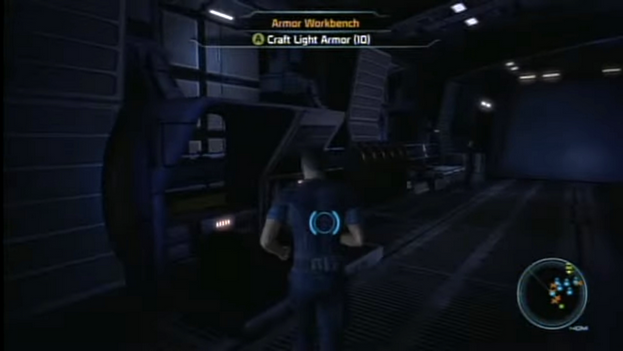 At some point during Mass Effect's development, a workbench was available in the garage. When interacted with, it would apparently allow Shepard to spend omni-gel to craft many types of gear.[2]