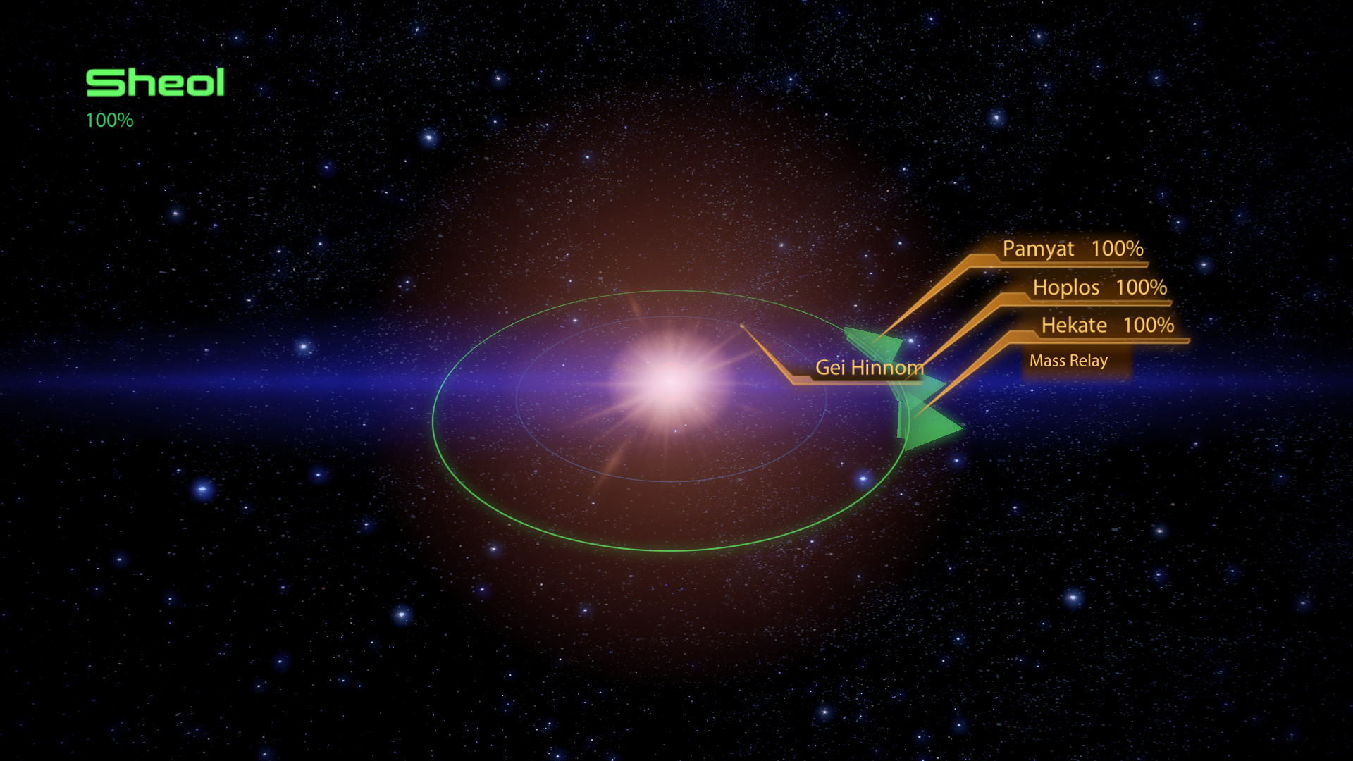 Sheol is a red dwarf. Its sole planet is noteworthy for having a wealth of material and cultural resources: a Prothean burial ground, attendant graverobbing, and mining operations forwarded to Pamyat.