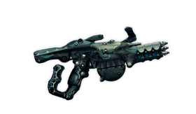 The massive kett Soned, translated as "resistance", rapidly unleashes plasma-surrounded projectiles after a brief charging period. Much of the Soned's size is devoted to insulating the user from its own power. A damaged Soned could incinerate its wielder's hands while continuing to fire.