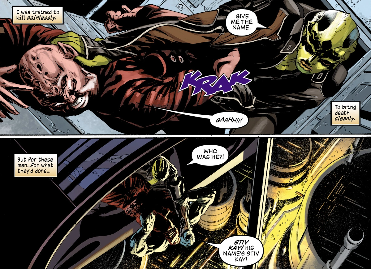 One by one Thane hunted down the people responsible. His mind slipped into darkness and he disregarded his clean-kill approach for brutal torture. Eventually he learned the name of the final culprit, a goon named Stiv Kay.