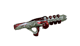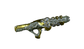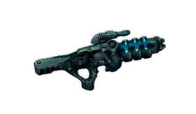 The kett Thokin, translated to "sudden death", fires tracking-enabled, plasma-surrounded rounds. The tracking effect-enabled by magnetic field adjustors in the projectiles-is slight but useful, particularly given the Thokin's low ammunition capacity. With such a weapon, accuracy is everything.