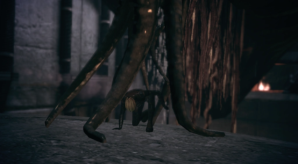 Once underground Shepard and the team found the Thorian's lair, which apparently smelled like rotting compost. Down a set of stairs the team was confronted with the Thorian itself: an enormous organic mass that looked nothing like a plant. In response to Shepard's approach, the Thorian produced a clone of Shiala to speak for it. Through the clone, the Thorian, referring to itself as the 'Old Growth', commanded Shepard to be in awe, saying every step the squad took was a transgression. It saw humans as "meat, good only to dig or decompose". After being betrayed by Saren, the Thorian had no interest in making a deal with "those who scurry" and began sending clones and Thorian Creepers after the squad. Shepard destroyed the neural nodes distributed throughout the building, dislodging the Thorian and sending it plunging through the ruins to its death.