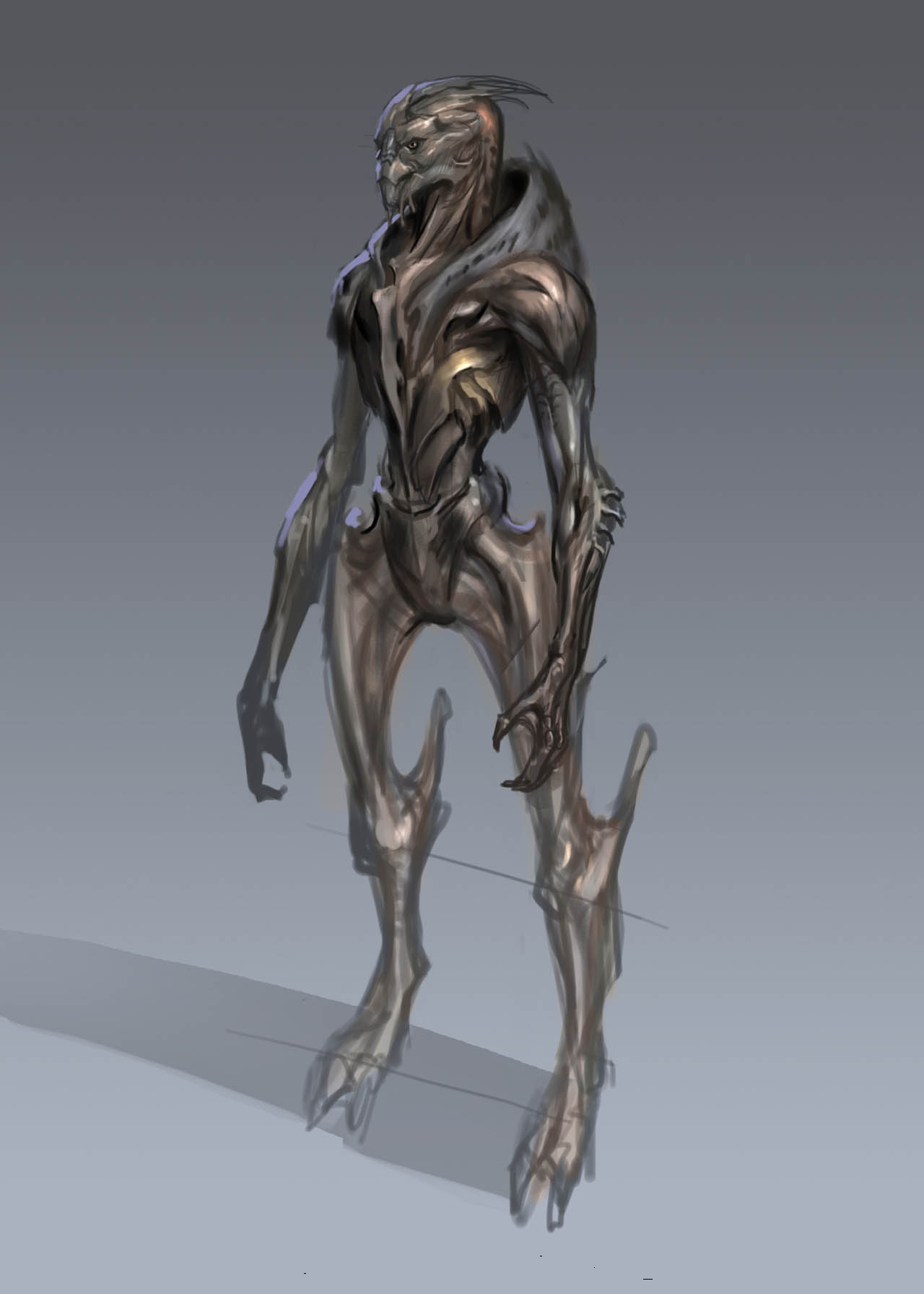Turian features are avian, making them resemble humanoid birds or raptors. However, unlike most Earth avian creatures, turians are viviparous and give birth to live young.[1] In 2165, David Anderson claimed that turians reminded him of the evolutionary link between birds and dinosaurs. Turians are also recognisable by their voices, which have a distinctive flanging effect. Males and females do not differ greatly in terms of physical appearance, but female turians lack the sweptback cranial crests of their male counterparts and possess larger, cat-like eyes. The lifespan of a turian is comparable to that of a human.[2]